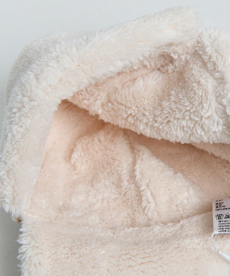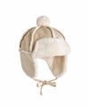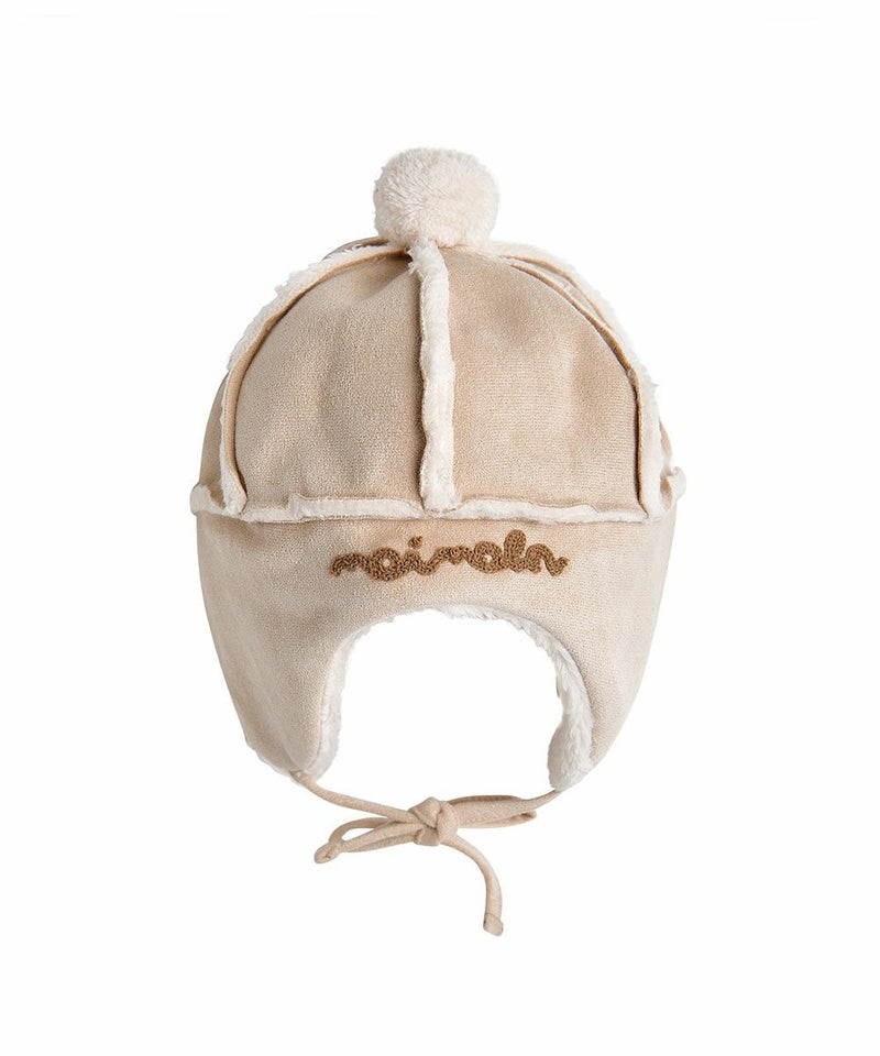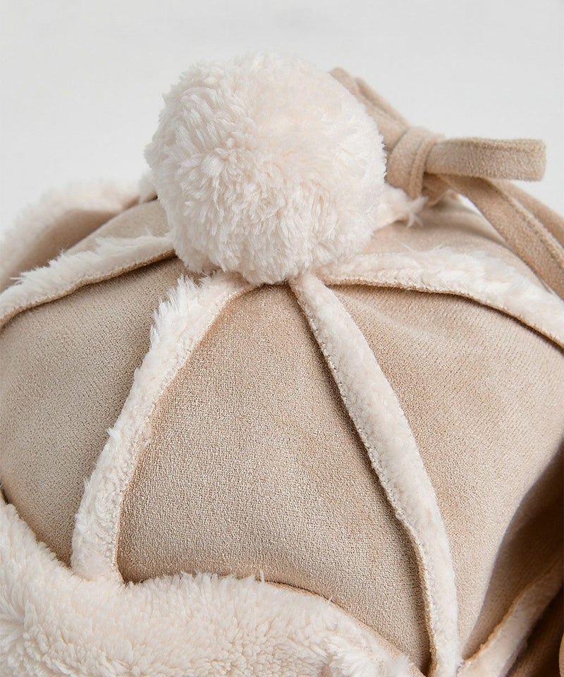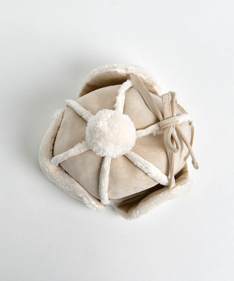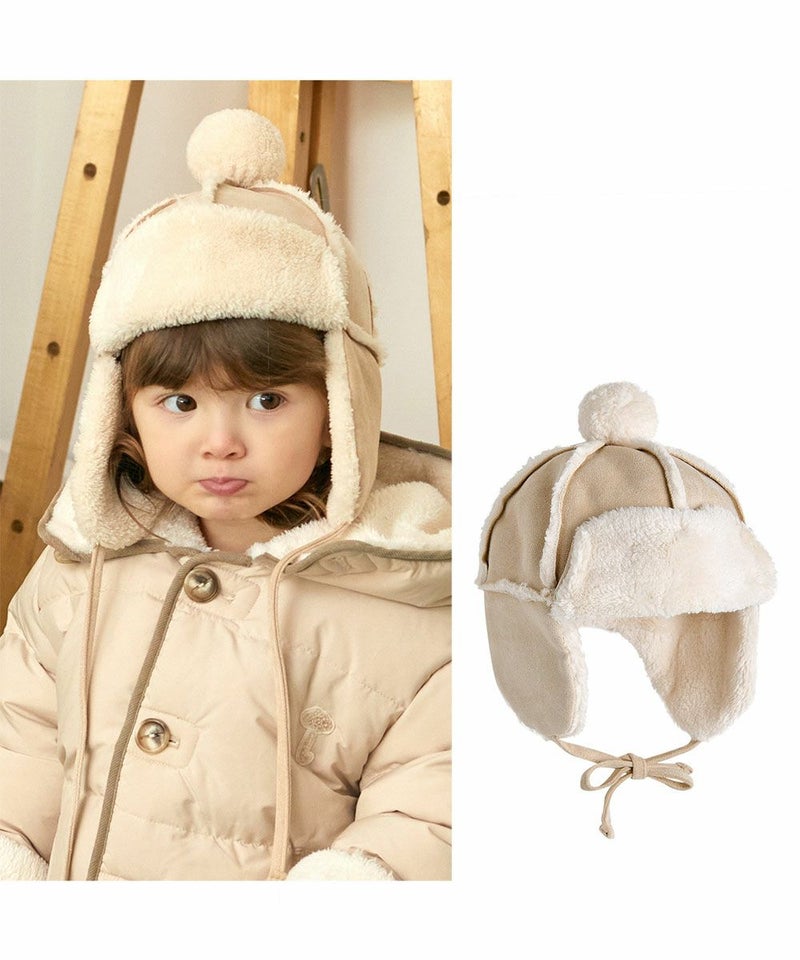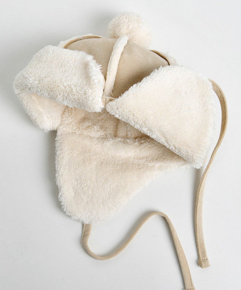 やわらかく暖かいファーの耳付きムスタン帽子。首部分のロゴ刺繍が寒い季節にぴったりで、見た目も暖かそう♪モルンムートンマフラー(W234MFI13P)とのコーデがおすすめです。