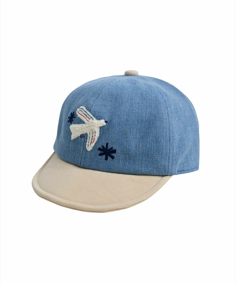 デニムのダメージと鮮やかなカラー感のカチオン素材を使用したキャップ。キャップの部分が柔らかい着心地が楽で鮮やかなカラー感で春のコーディネートにポイントを与えるのにぴったりなアイテムです。