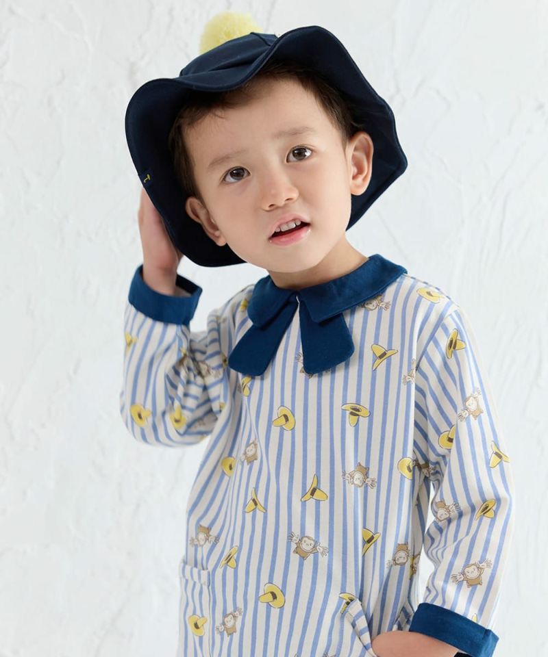 【日本限定販売】大人気絵本「おさるのジョージ」とmoimolnが初コラボ。モイモルンらしいボンボン付チューリップハットに、ジョージワッペンをあしらいました。2024年に即完売した大人気商品「オーズポンポン帽子」のデザインをアレンジしました。トップス、パンツだけでなく頭まで大好きなジョージでトータルコーディネートができます。なんにでも合わせやすいネイビー無地なので、どんなお洋服とも相性抜群です。