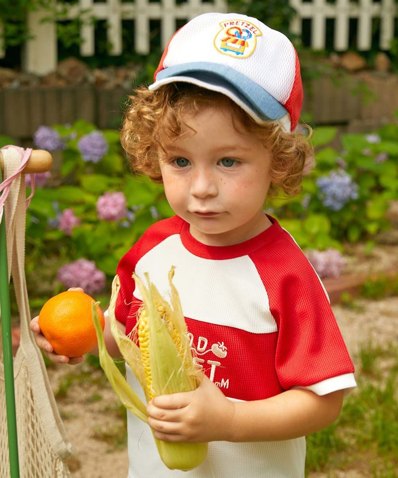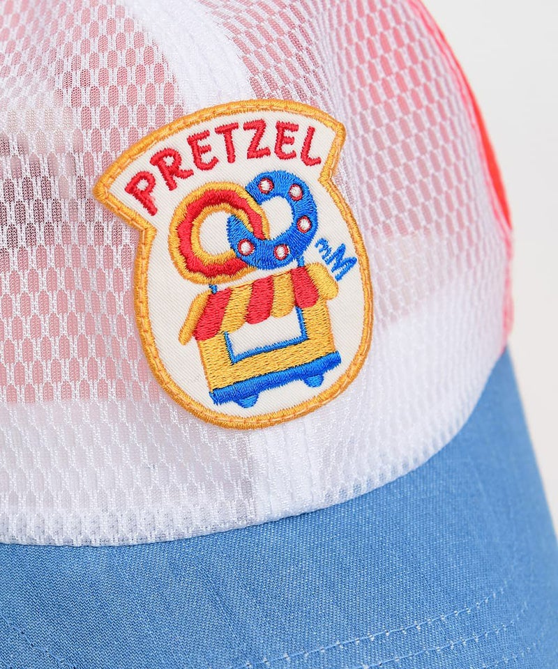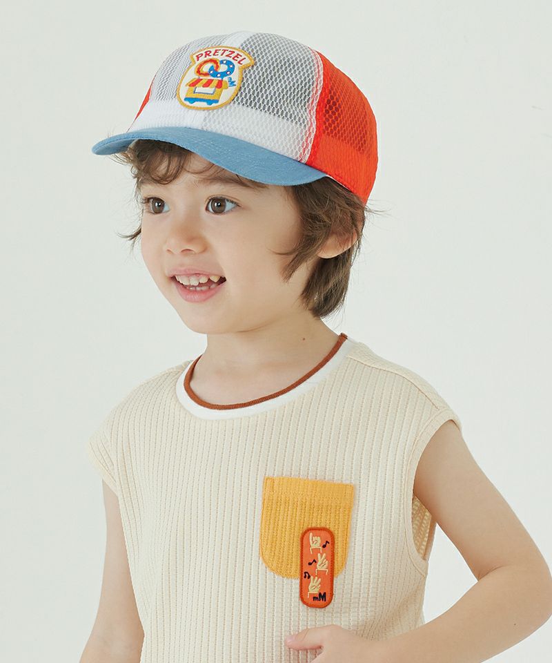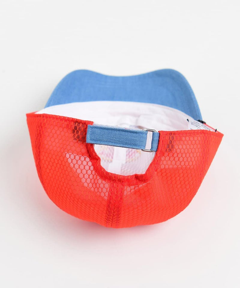 フロントにワッペンを飾ったメッシュキャップ。風通しが良く、涼しげな印象のアイテム。カラフルな配色が、夏のスタイリングのポイントに♪