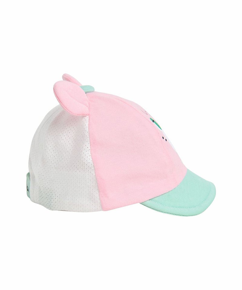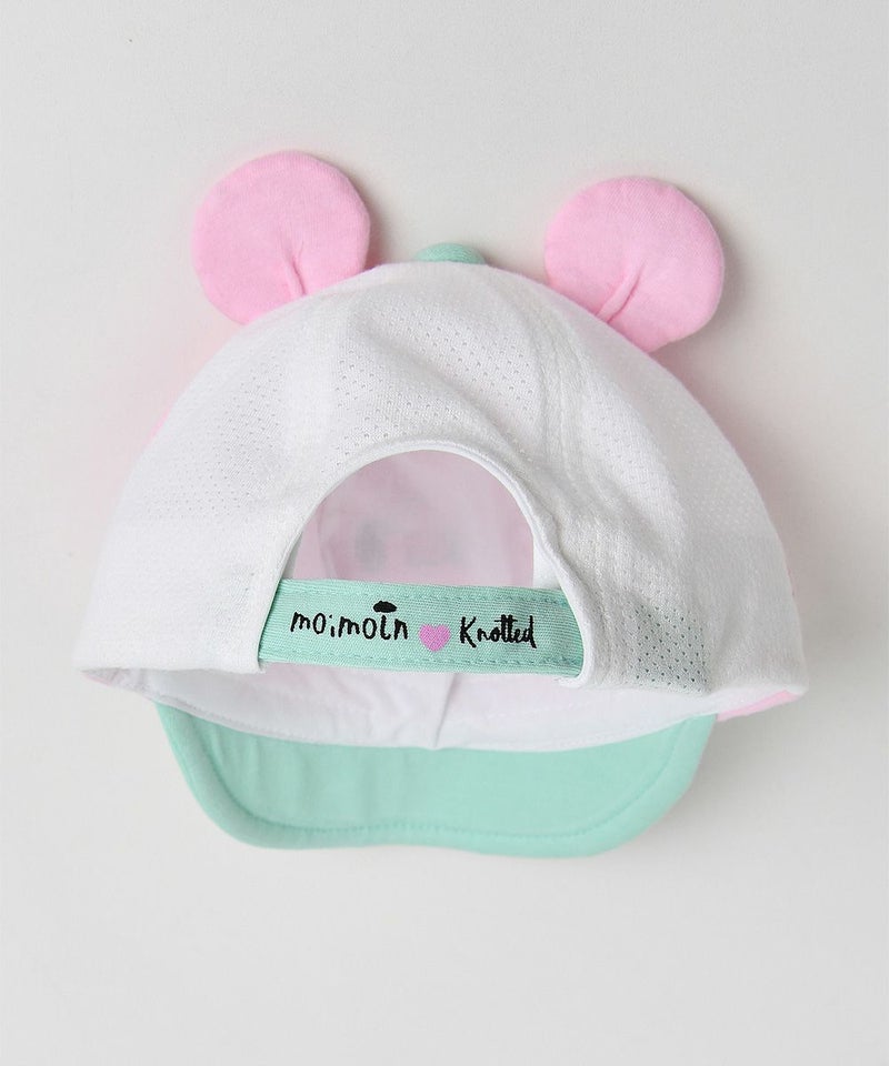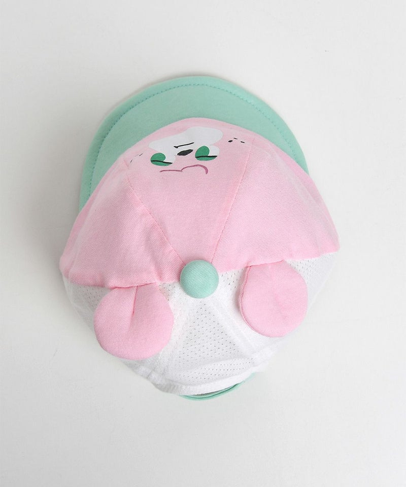 存在感のあるシュガーベアの顔が特徴的なキャップ帽。くるみボタンとつばのグリーンカラーの配色と立体耳飾りでポイントを与えたアイテム。(W242BUN89P)とのコーディネートがおすすめです。