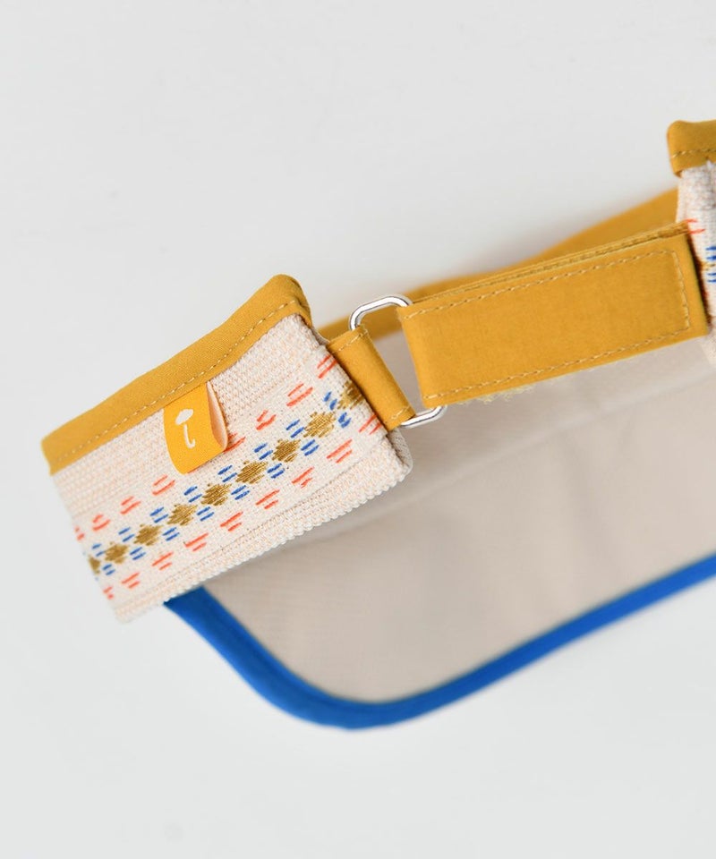 密度のある素材を使用し、爽やかな雰囲気の配色ラバーと飾りテープがポイントの夏にぴったりなサンキャップ。裏地メッシュ生地で楽に着用できるアイテムです。
