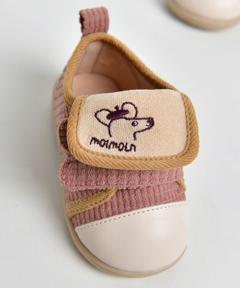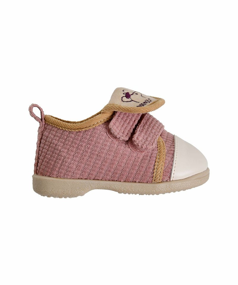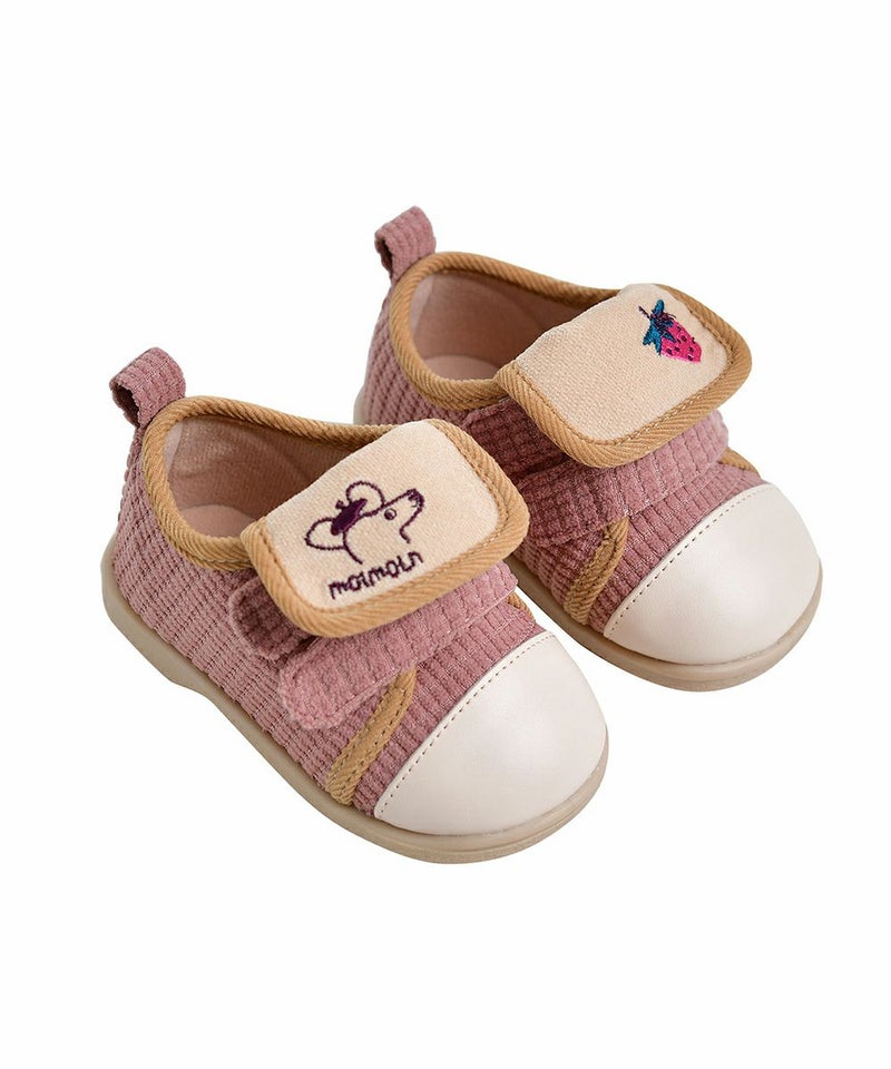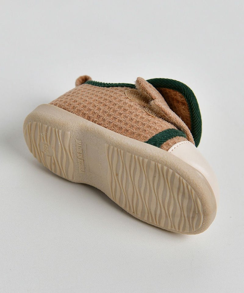 暖かい起毛が裏地に使われているメロディーシューズ。足の甲のかわいい刺繍がポイントで、カラー配色されたラバーがカジュアルな印象のアイテム。ワッペンボア帽子(W234CAI03P)とのコーデがおすすめです。