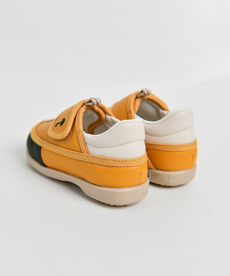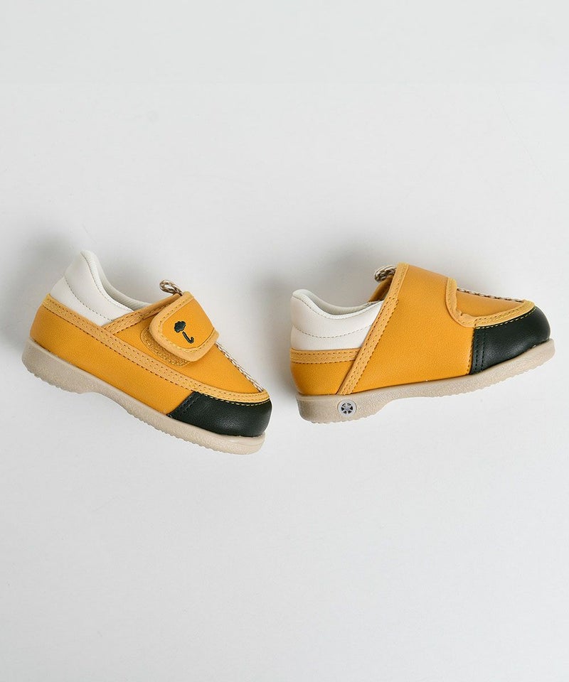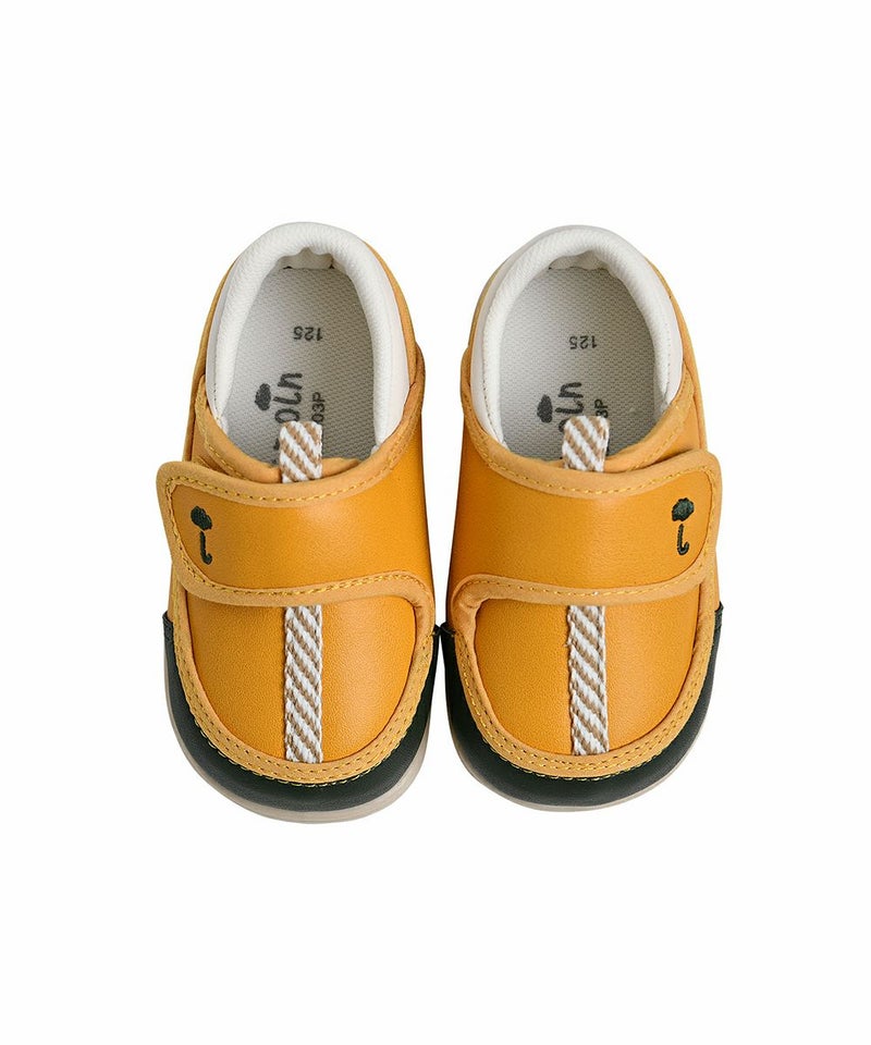 ビビッドなマスタードカラーとストライプテープのデザインがポイントのメロディシューズ。バンド部分が広めのため、安定感のある履き心地の良いアイテムです。