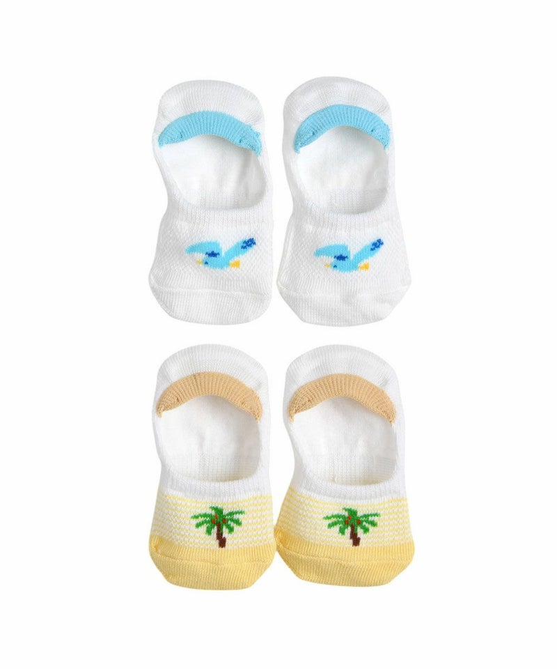 夏に思い浮かぶ爽やかなヤシの木とカモメが描かれた靴下。毎日涼しげなスタイルを完成することができるアイテムで、どちらのデザインもメッシュ素材なので、通気性に優れ夏に快適に着用できる実用的なソックス。滑り止め機能もあるのでより安定感があるアイテムです。