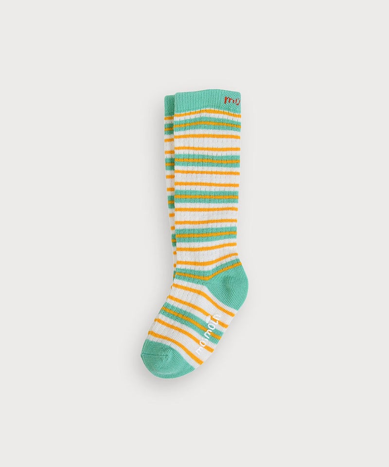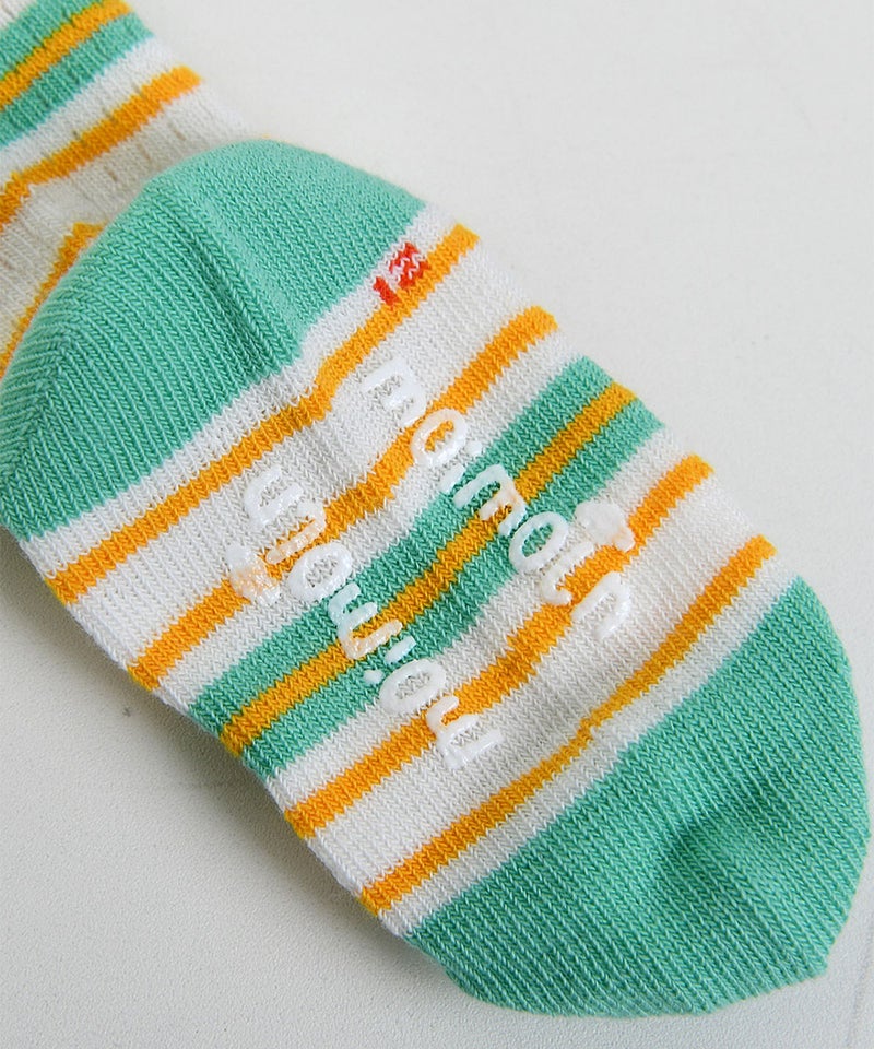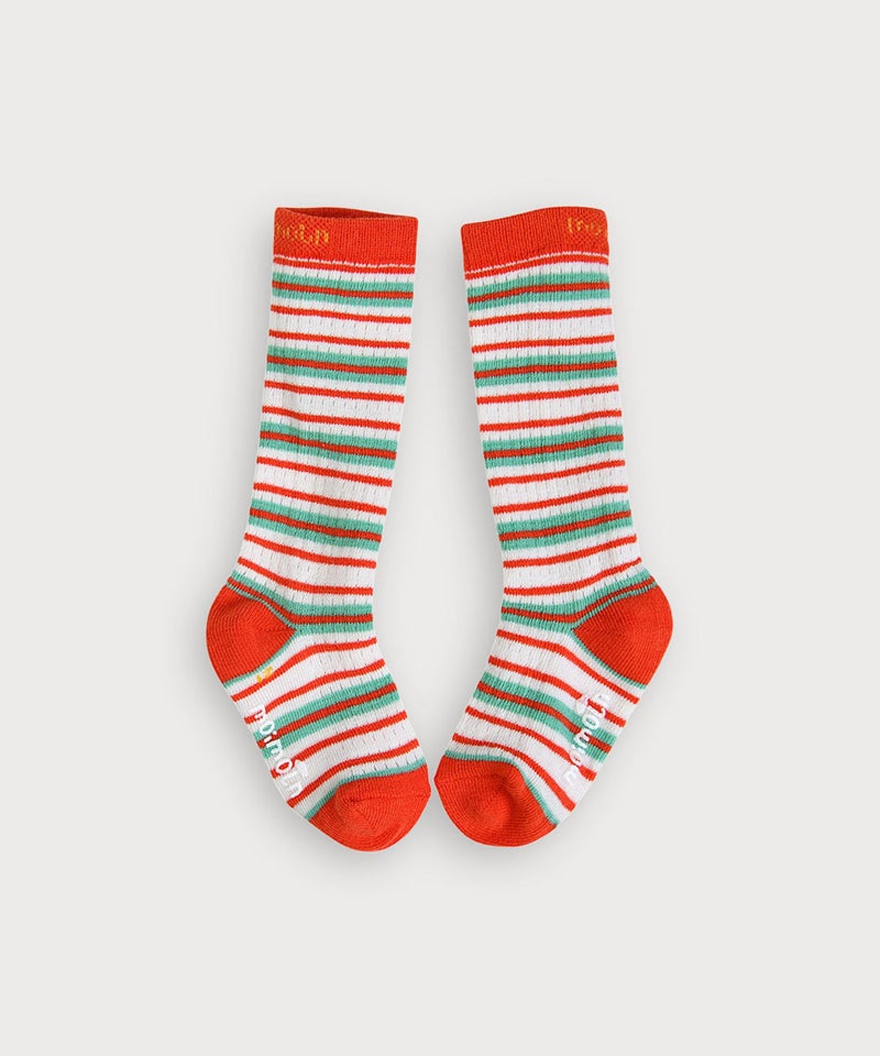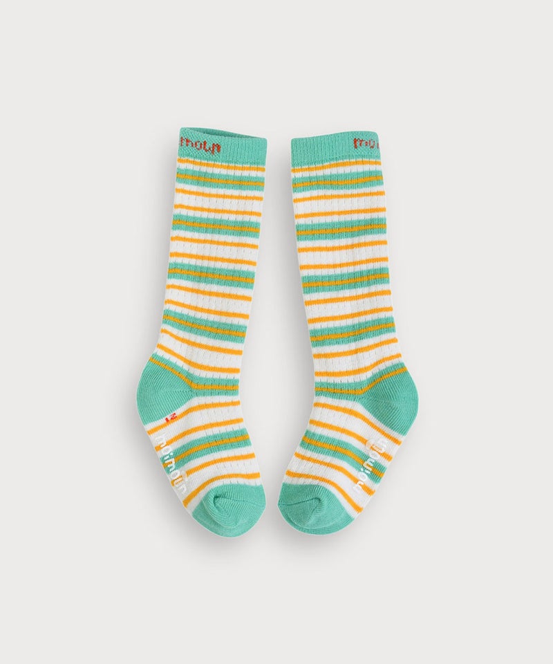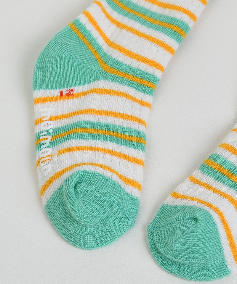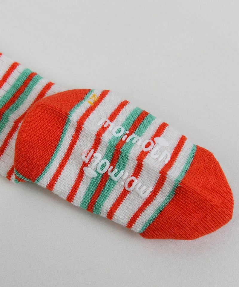 ポップなカラーのボーダー柄がポイントのひざ下丈靴下。