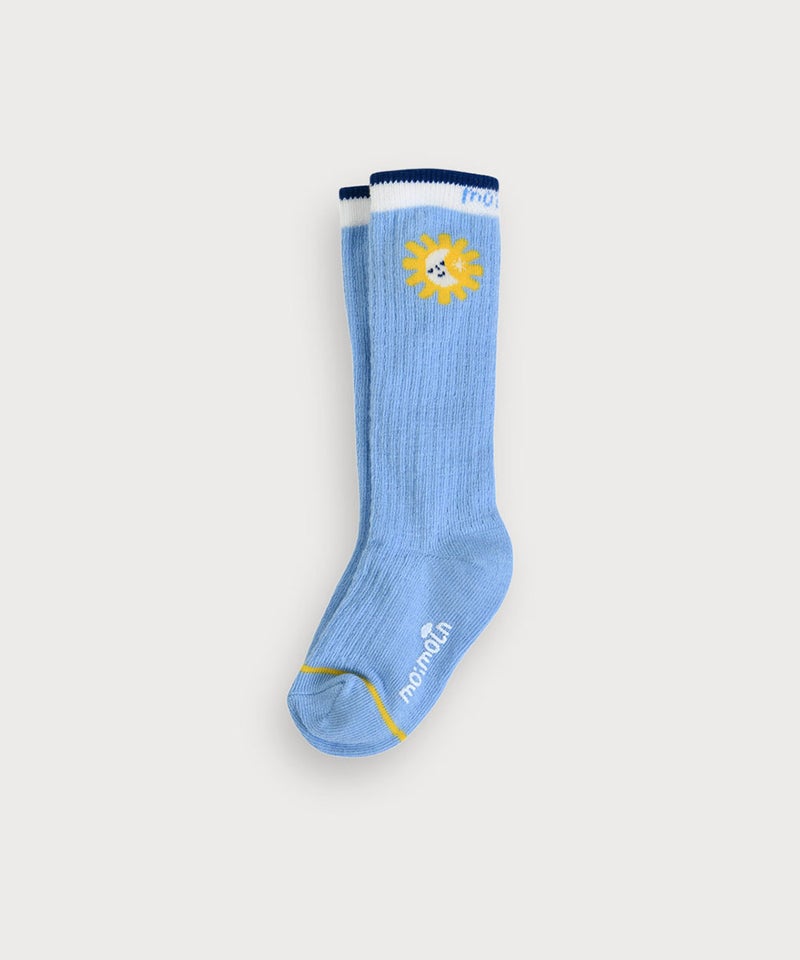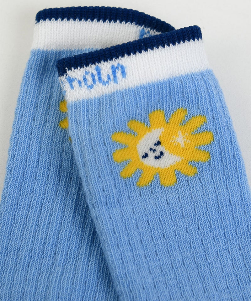 夏の青い空と太陽がモチーフのひざ下丈靴下。