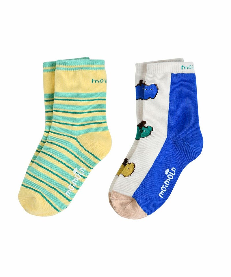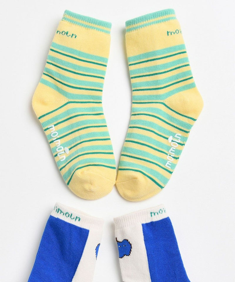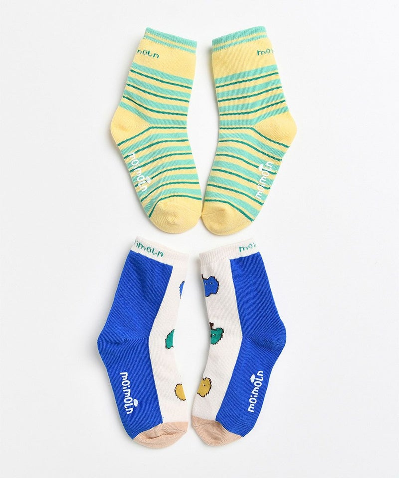 それぞれのソックスにシーズンカラーとグラフィックが溶け込んだ2組セットのソックス。ユニークなカラーのパプリカがポイントのブルー系ソックスと、爽やかなカラーのカジュアルイエロー系ソックスで、様々なコーデが楽しめるアイテムです。