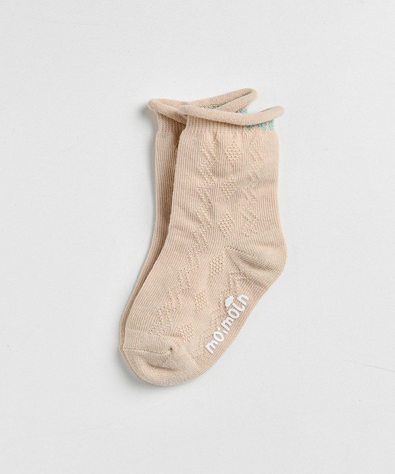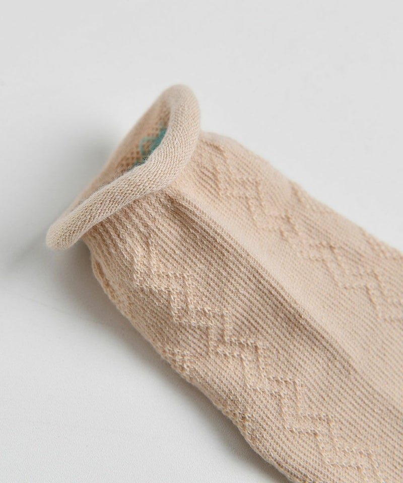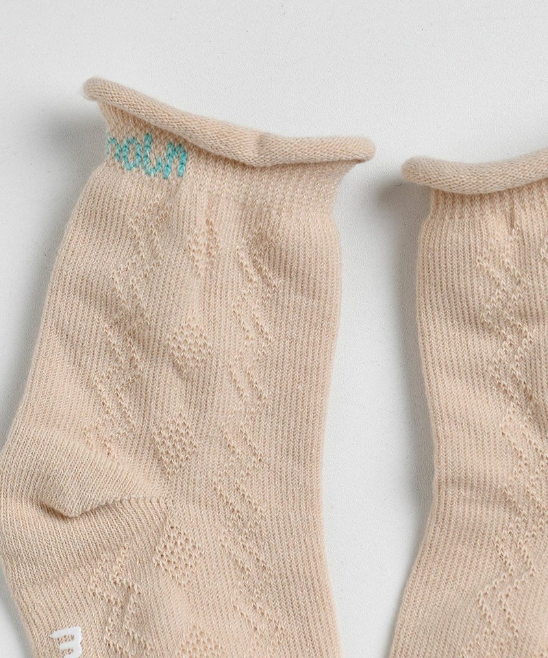 シンプルなカラーで幅広いデイリーコーデにぴったりなソックス。丸まっているの足首部分がかわいいおすすめポイントです。