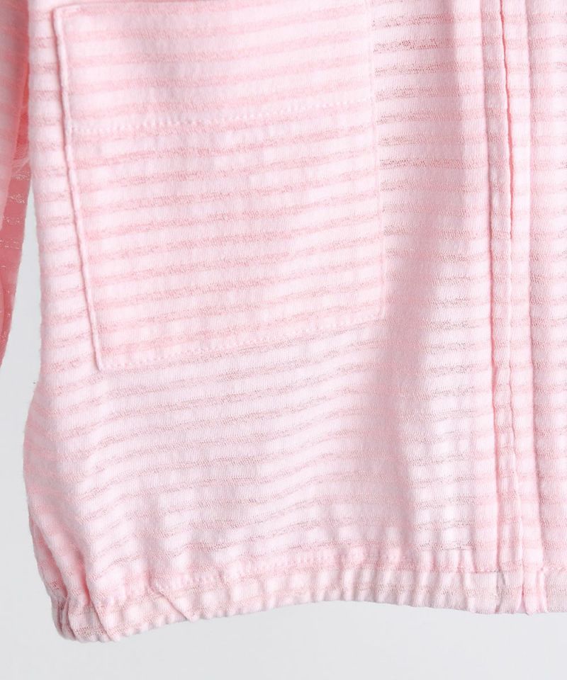 透け感のあるボーダージャンパー。クラゲのワッペンがポイント♪夏場の冷房対策や水着の上にも羽織りやすいアイテムです。