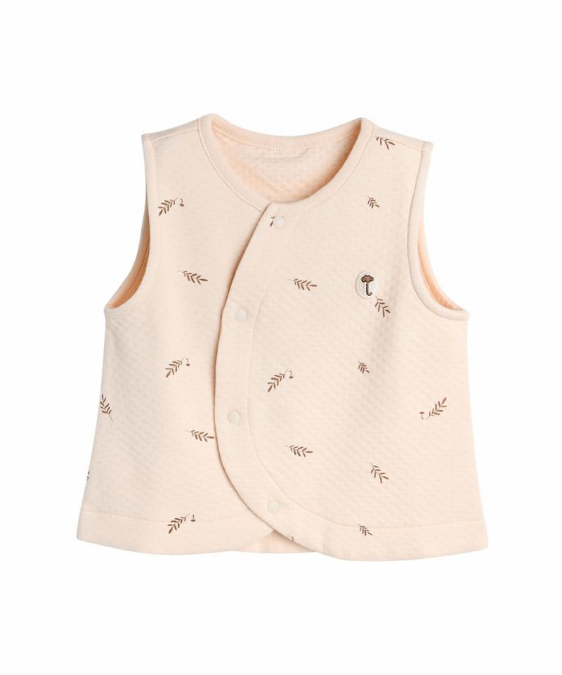 抗菌_消臭効果に優れた柔らかいバンブー素材のルームウェア。リーフ柄とフロントのワッペンがポイントのルームベストです。