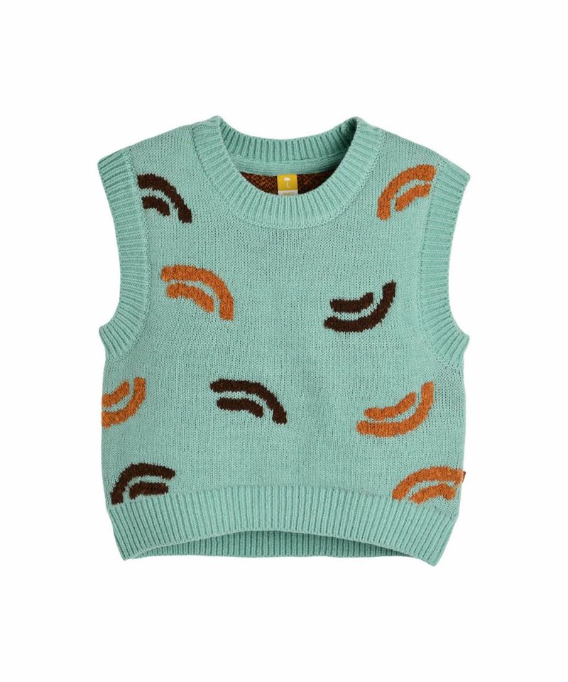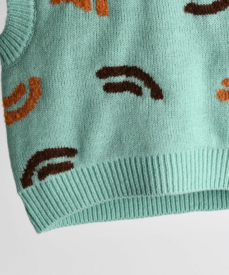 かわいい刺繍がポイントのニットベスト。厚みのあるデザインでトレンディな雰囲気のアイテム。ハウパンツ(W243PTB09P)とのコーディネートがおすすめです。