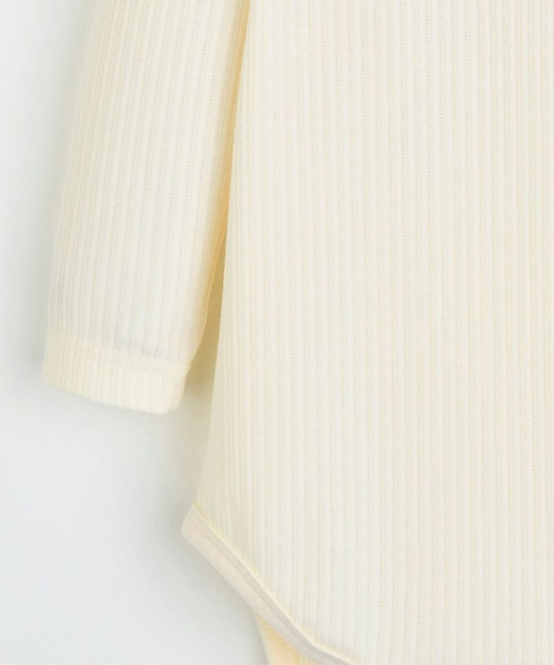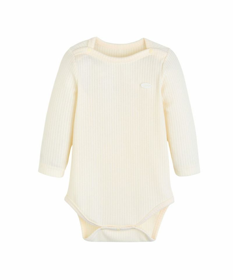 柔らかく伸びのよい素材を使用した長袖ボディスーツ。ワントーンのシンプルなデザインに胸元にさりげなくワッペンでブランドロゴをプラス、肩と股下がスナップボタンで大きく開くのでオムツ替えやお着替えも簡単です。大事なお子さまの普段使いに適したアイテムです。