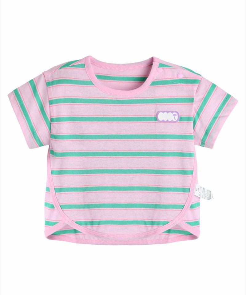 配色カラーがかわいいボーダー半袖ルームウェア。トップスの淵にもカラーパイピングがほどこされてシンプルながらもしっかりとした作りになっています。ベビーギフトとしてもおすすめです。