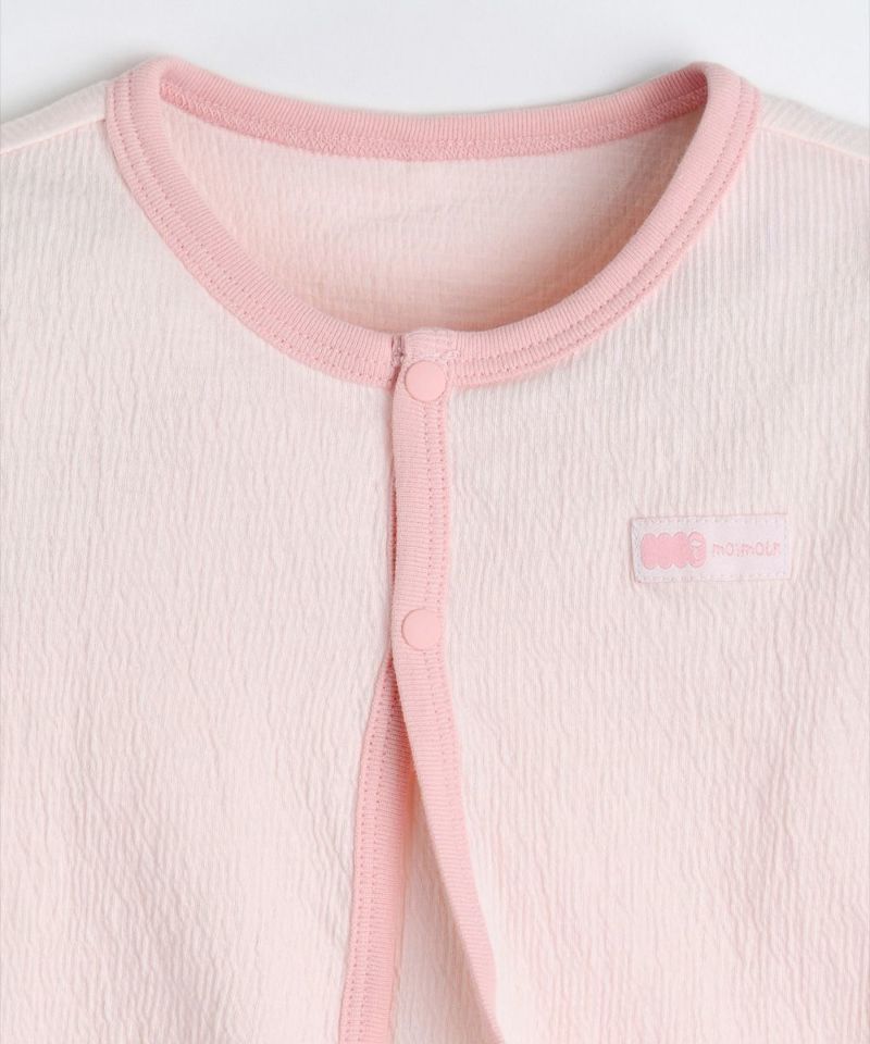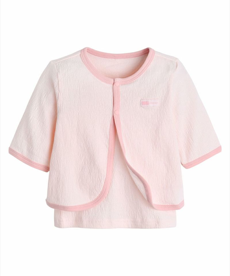 お得な3点セット。キャミソール、半端丈パンツ、季節の変化に合わせて使える同生地の七分袖カーディガンも付いています。伸縮性に優れたレーヨン混生地を使用し、カラフルなパイピングで遊び心のあるデザイン。ベビーギフトとしてもおすすめです。