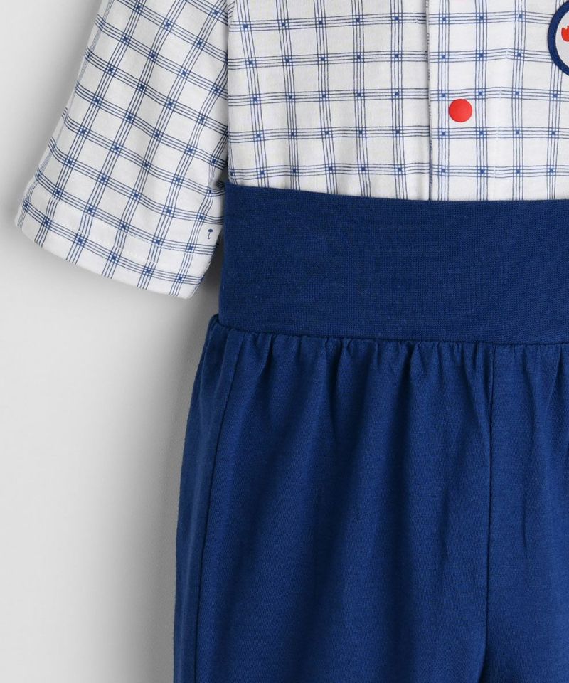 チェック柄にカニのワッペンがポイントの七分袖パジャマ。柔らかい肌心地のモーダル混生地を使用したシャツタイプのトップスに、太いウエストゴムのボトムのセットで寝てるときも安心。品番(M2522AN03P)と コーディネート おすすめです。