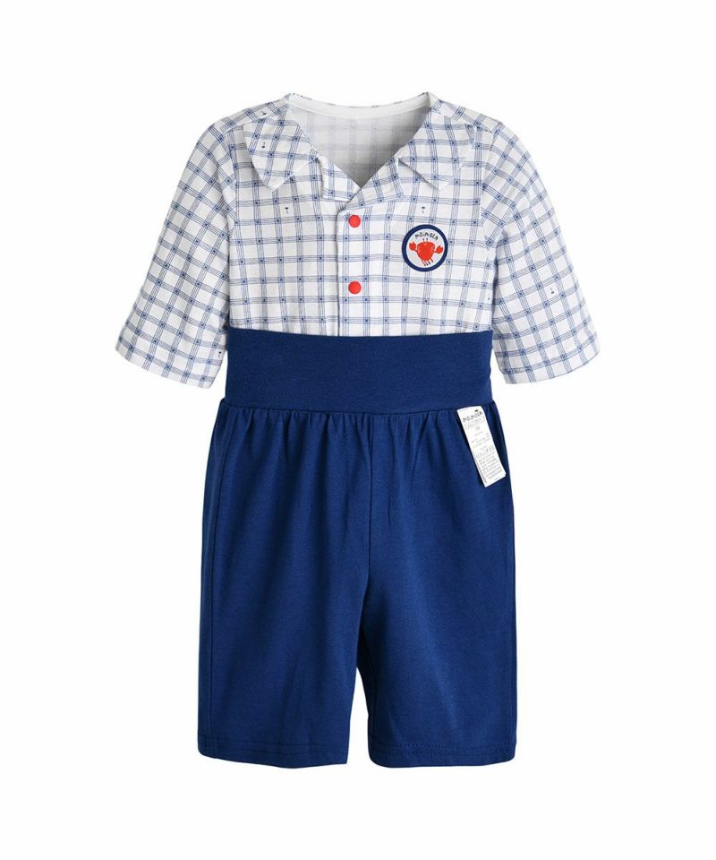チェック柄にカニのワッペンがポイントの七分袖パジャマ。柔らかい肌心地のモーダル混生地を使用したシャツタイプのトップスに、太いウエストゴムのボトムのセットで寝てるときも安心。品番(M2522AN03P)と コーディネート おすすめです。