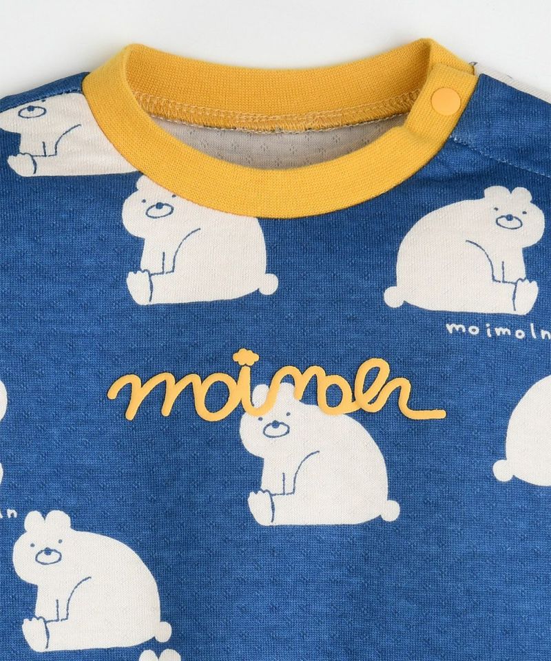クマのデリック(derick)の総柄プリントの長袖トップスとロングパンツのルームウェア。胸元のブランドロゴがプラスされ、パンツはシンプルに無地でバランスもばっちり。袖や裾はリブ仕様で優しくフィットし、スナップボタンでお着替え簡単です。コットン素材の商品は、着心地・肌へのやさしさ・快適性に優れた、毎日着たくなる安心素材です。お子さまのルームウェアとしてはもちろん、ギフトにもおすすめの商品です。
