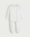 ネコのミャオ(meow)がプリントされた長袖トップスとロングパンツのルームウェア。全体的に広がるネコマークがCute、赤ちゃんの愛らしさを引き立ててくれます。お子さまのルームウェアとしてはもちろん、ギフトにもおすすめの商品です。コットン素材の商品は、着心地・肌へのやさしさ・快適性に優れた、毎日着たくなる安心素材です。