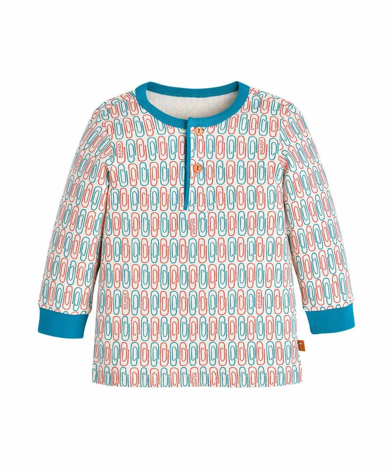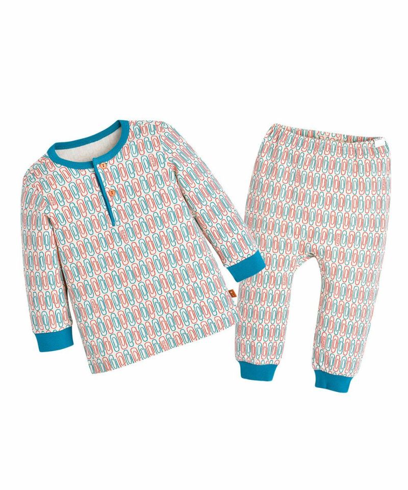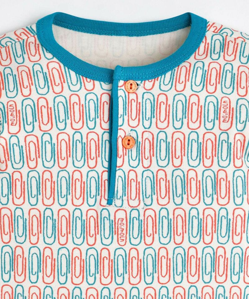 クリップモチーフを使用した総柄にパイピング、袖口にカラー配色を加えたルームウェア。全サイズ前半開きで ボタン部分もカラー配色がポイントのアイテムです。