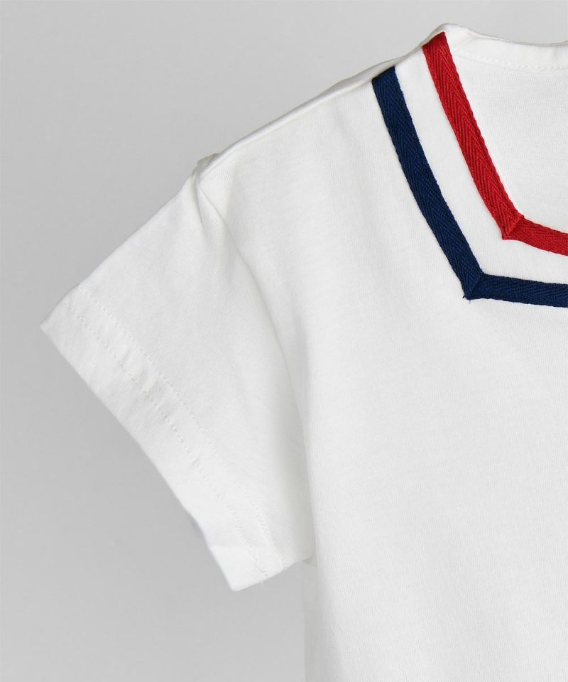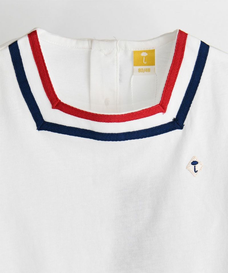 カラーテープデザインセットアップ。すっきりとしたスクエアネックと配色が可愛いアイテム。シンプルなデザインで夏にヘビロテできるアイテムです。