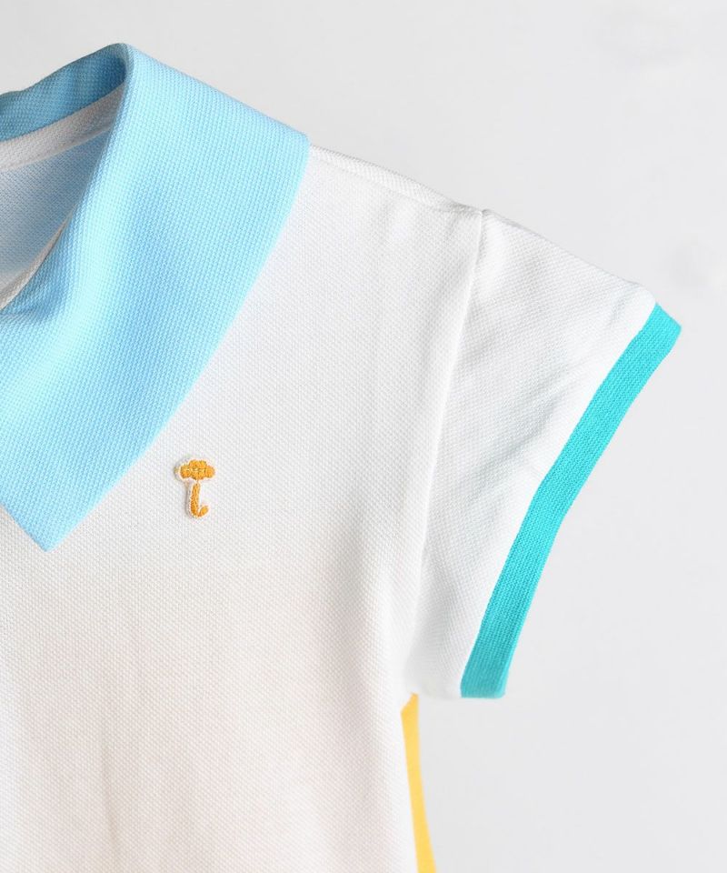 配色セットアップ。襟からパンツにかけての配色がポイント♪moimolnらしいカラーで涼し気なアイテムです。