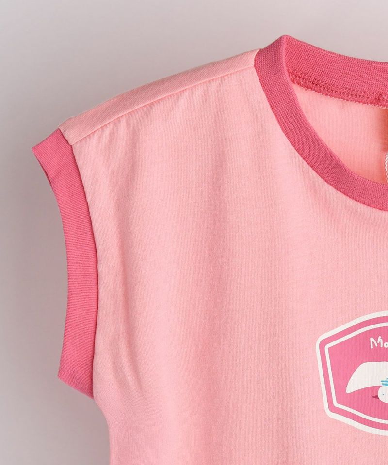 ノースリーブセットアップ。フロントのバードプリントとパイピングの配色がポイント♪デイリーコーデに大活躍するアイテムです。