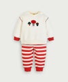 クリスマスシーズンだけでなくデイリーにもおすすめなモコモコして暖かい、起毛素材の長袖トップスとロングパンツのセット。長袖トップスはフロントのキノコのステッチや袖の切り替えをカラフルにすることでおしゃれな印象に。パンツはカラーボーダーがかわいく、起毛素材なので保温性があります。