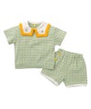 【日本限定】インパクトのある大きなセーラーカラーがさわやかな印象を与えてくれる半袖トップスとショートパンツのセット。