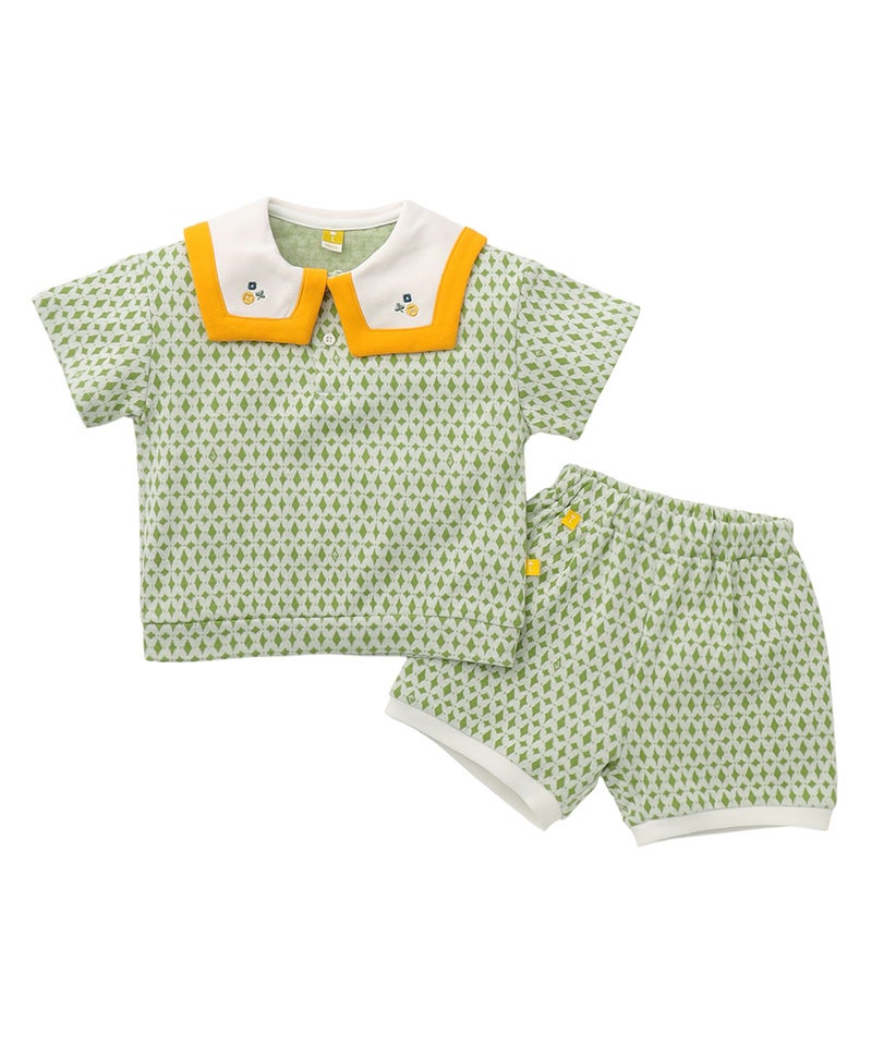 【セットアップ】セーラーカラーダイヤ柄半袖トップス&パンツ
