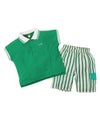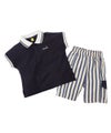 【日本限定】カラーライン入りの鹿の子ポロシャツとロンドンストライプのパンツのセット。