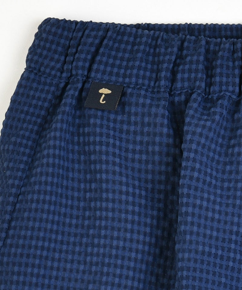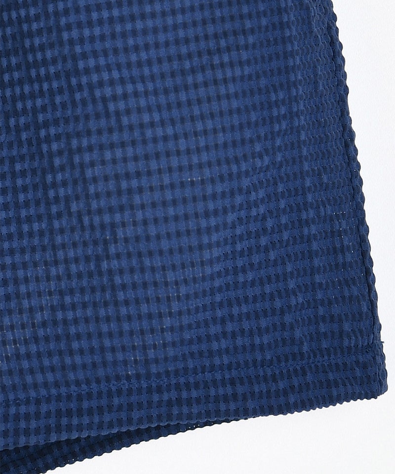 通気性のあるシアサッカー素材特有の凹凸のある表面で、服と体の接地面が少なく、暑い夏でも快適な着心地。
