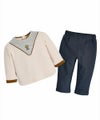 フロントの切り替えと袖の配色がおしゃれなセットアップ。おとぎ話からそのまま出てきたような木のドアとポストの刺繍がポイント。ボトムスは動きやすい伸縮性の良い素材を使用したパンツです。