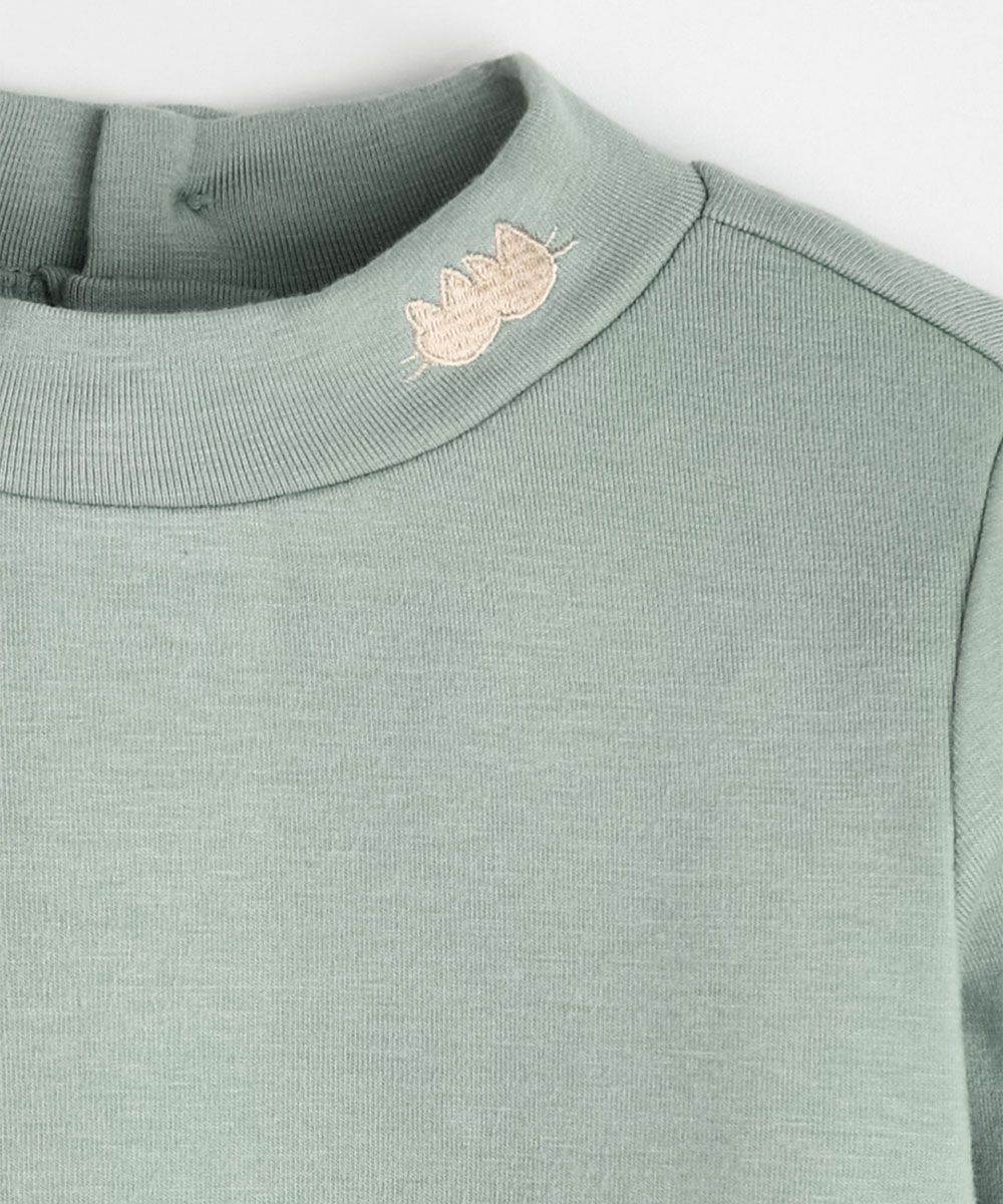 【SOFT&】キャット刺繍モックネック長袖Tシャツ