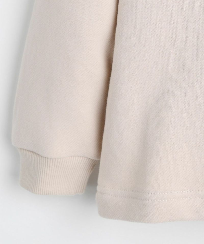 柔らかく保温性の高いウールの起毛素材のラグランTシャツ。裾のかわいい犬の刺繍がポイントで、様々なボトムとマルチコーディネートしやすいアイテムです。