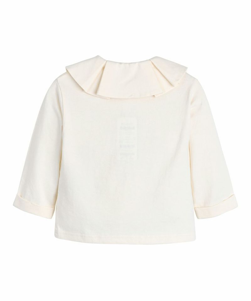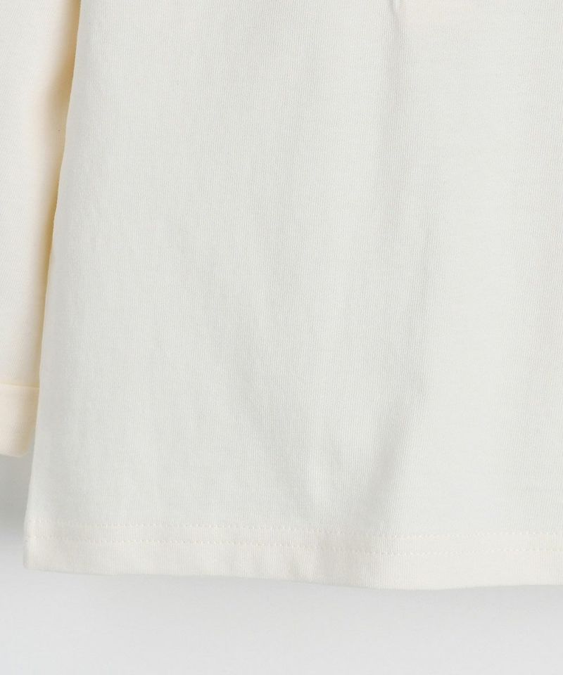 プリーツの大きな襟がポイントのTシャツ。ノーカラーアウターとの組み合わせがおすすめです。