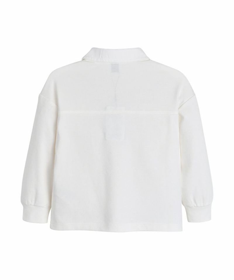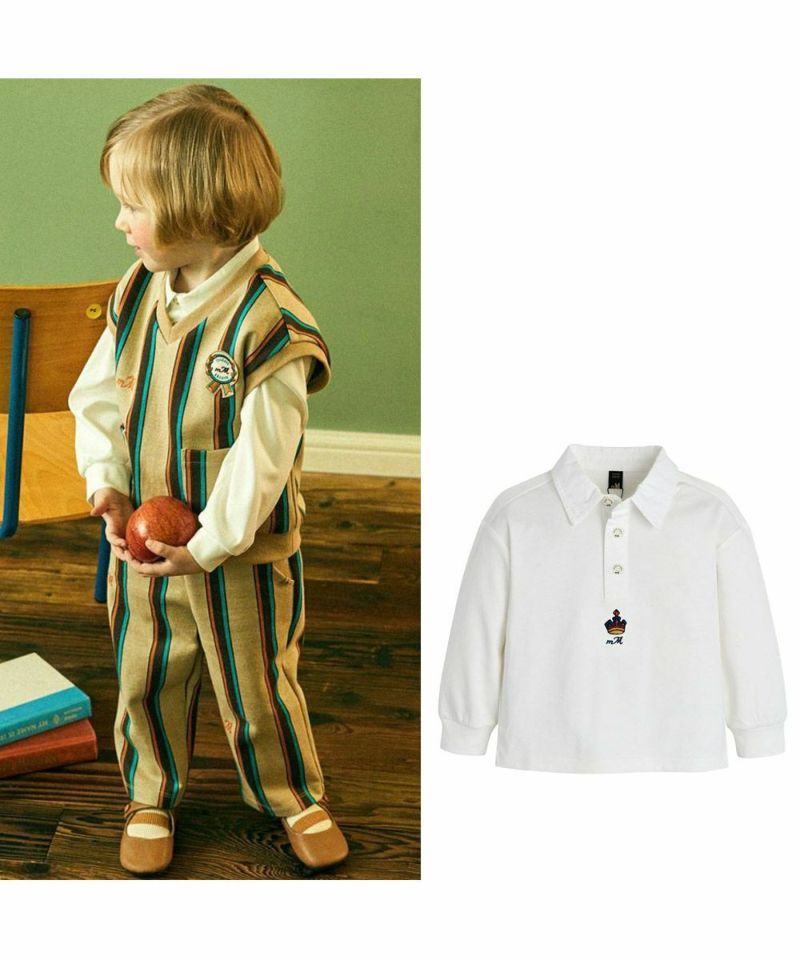 柔らかく丈夫で伸縮性の良い素材を使用したカラートップス。シャツより手入れがしやすく、レタリングロゴボタンを使用し高級感を加えたアイテムです。