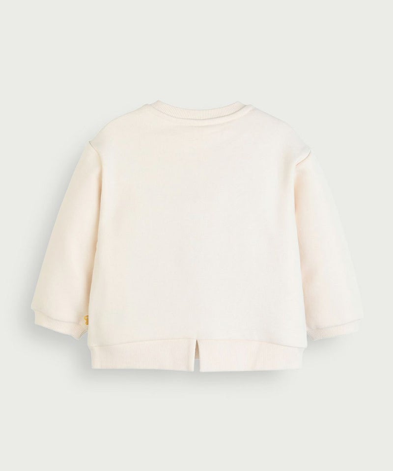 ネコのミャオ(meow)のパッチがかわいい、裏毛素材の長袖トップス。ネコと森の木や花のプリントがポイントで、裏毛なので保温・保湿性が高く、吸水性もあります。様々なボトムスとコーディネートの活用度が高く、デイリーに活用しやすい長袖トップスです。