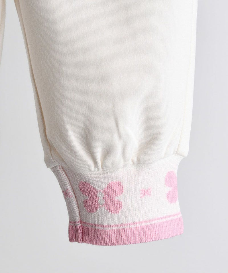 柔らかい肌触りのクッションの様な素材で製作したジョガーパンツ。裾バンドにラブリーな蝶の形でポイントを与え、クリームカラーで何とでも簡単にコーディネートができるアイテムです。
