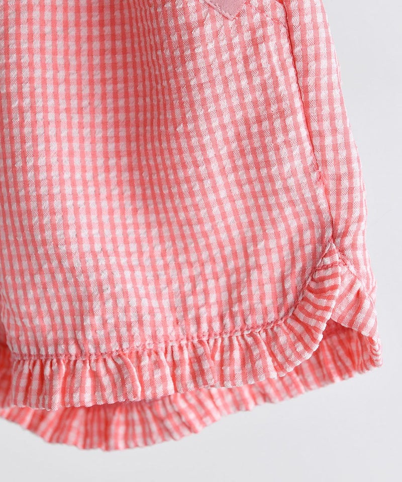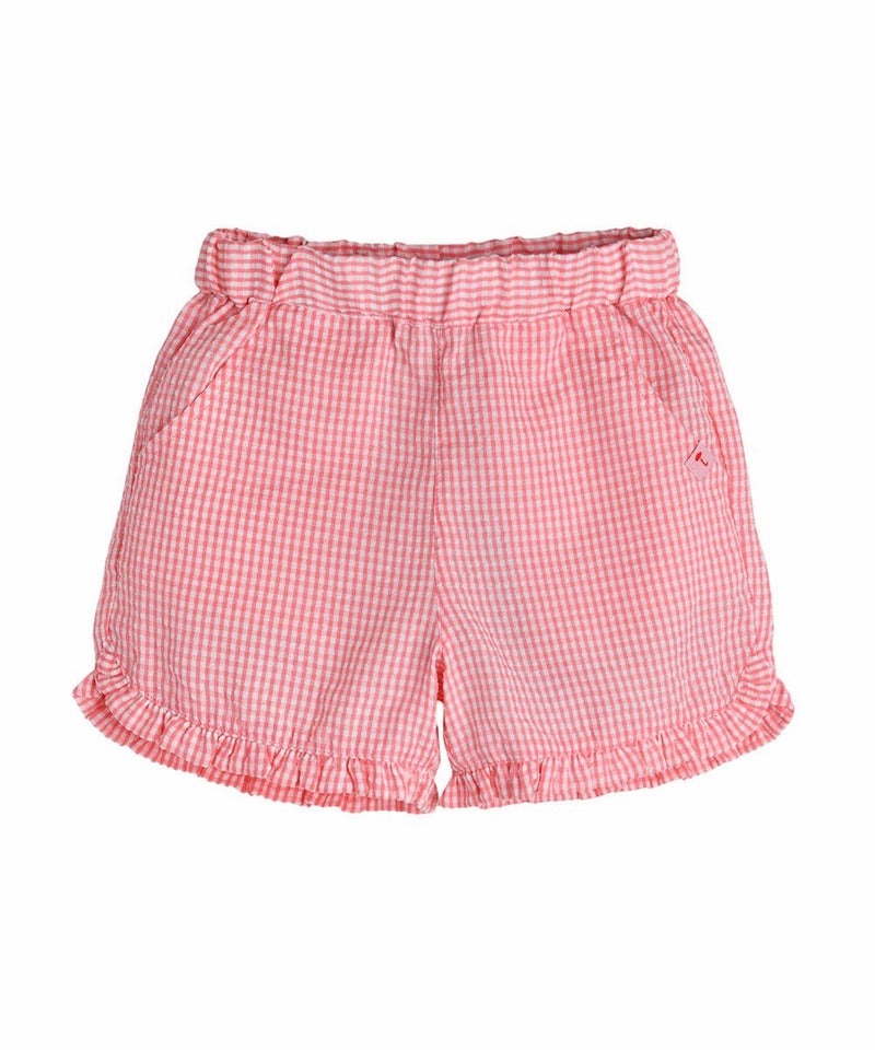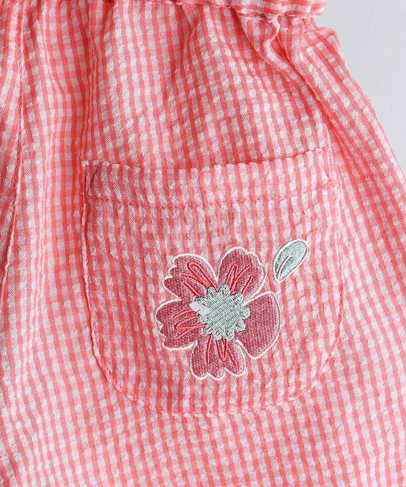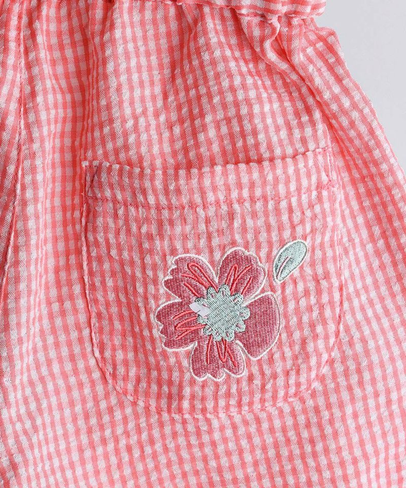湿った暑い夏でも体に引っ付きにくい清涼感が感じられるシアサーカー生地の4分丈パンツ。後ろポケットに花刺繍でポイントを与え、ズボンの裾にフリル飾りを加えることで、女の子らしさを強調しつつ、動きやすさも考慮したデザイン。ウエストの内側に調整ストリングを加工することでサイズに合わせてサイズ変更可能なアイテム。ベカシアカージャンパー(M252JMG06P)とセットアップコーディネートがおすすめです。