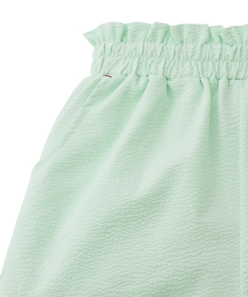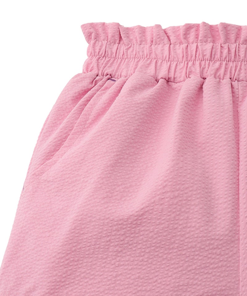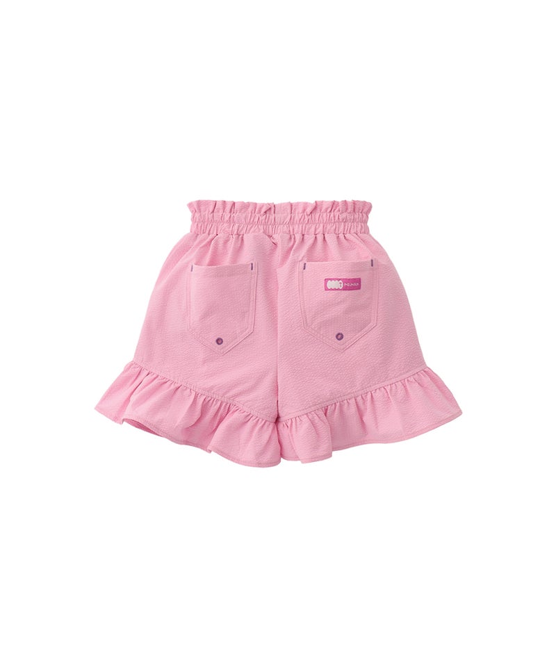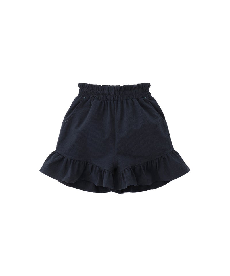 女の子らしいキュロットタイプに裾口にはフリルを採用、ポケットにには配色カラーの水抜き穴や、よく力のかかる部分をしっかり縫製し、耐久性を高めています。