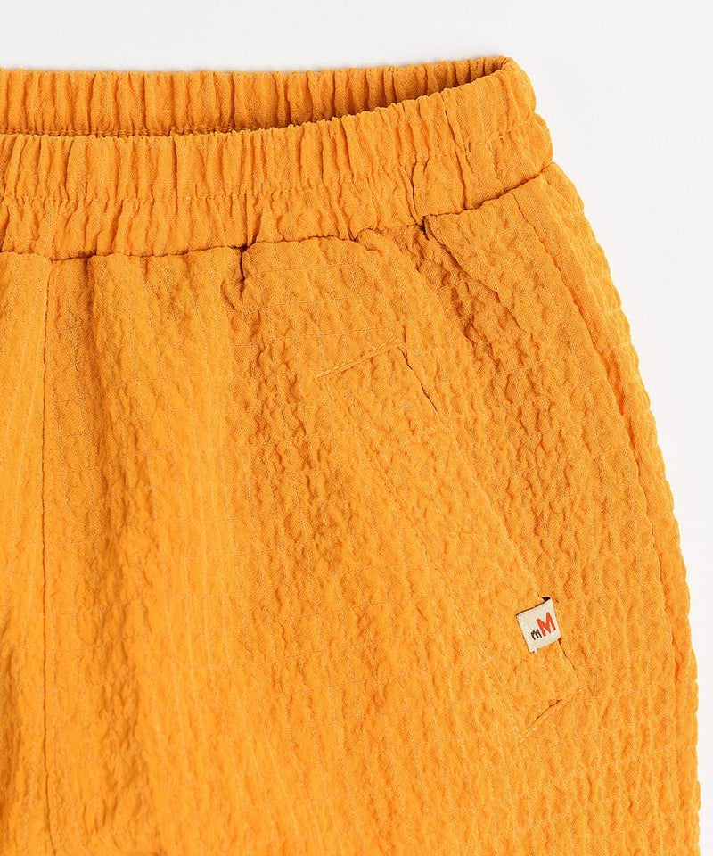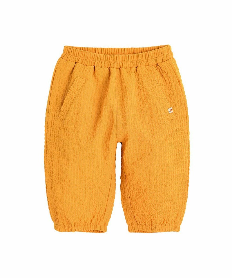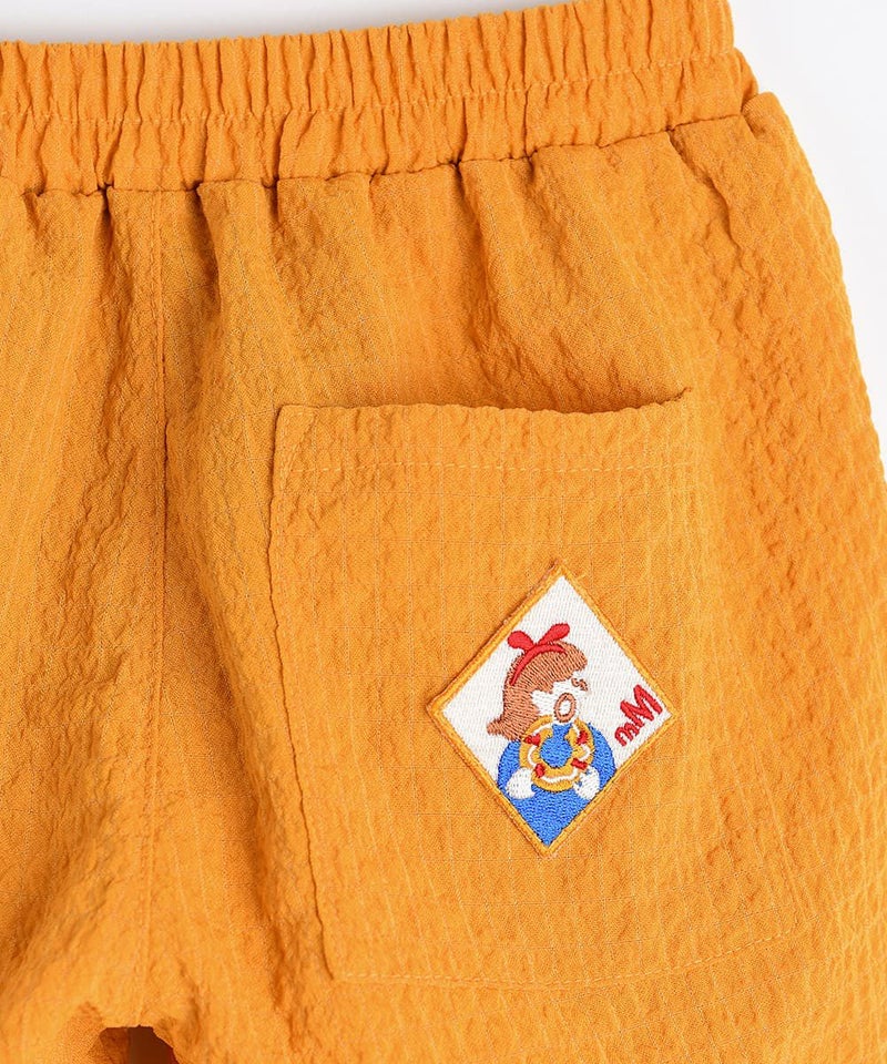 涼しく優しい肌触りの7分丈パンツ。後ろポケットにシーズングラフィックの刺繍ワッペンがポイント♪イエローカラーがコーデのポイントになりおすすめです。