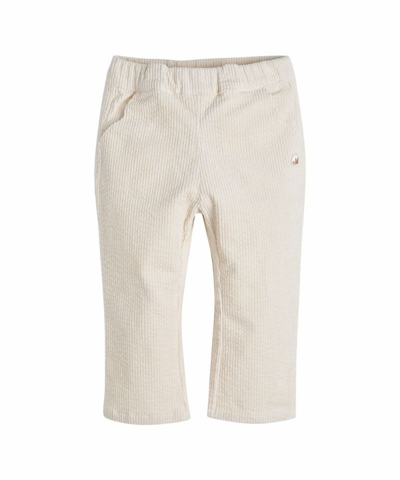柔らかいコーデュロイ素材にセミベルボトムラインのパンツ。伸縮性の良い素材とソフトなクリームカラーで様々なスタイリングが可能なアイテムです。