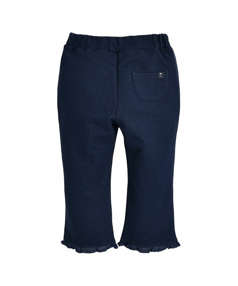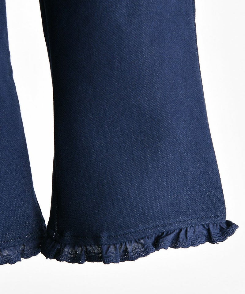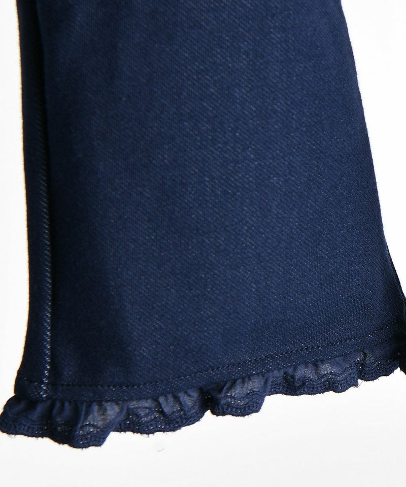 デニムの代わりとして着用しやすいパンツ。女の子らしいシルエットのブーツカットで、 裾レースフリルで可愛らしさをプラスしたアイテムです。
