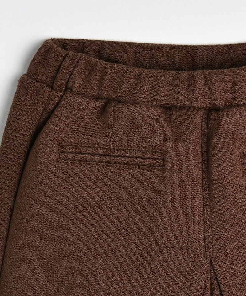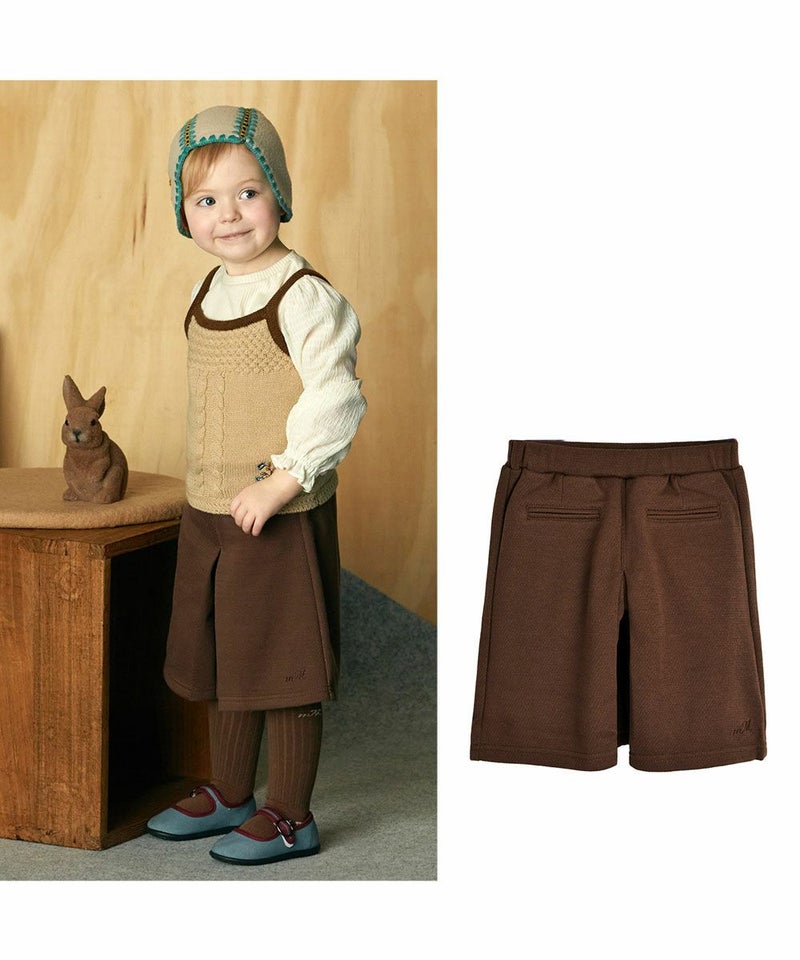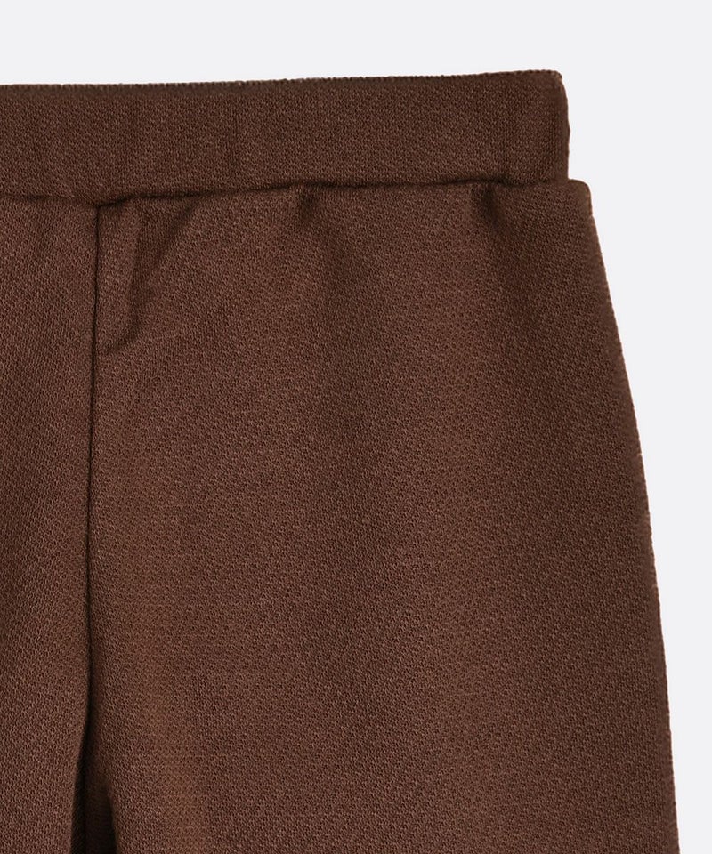 秋コーデにピッタリなブラウンのジャカード7分丈ワイドパンツ。スカート風パンツで着心地が良く、おしゃれなアイテムです。