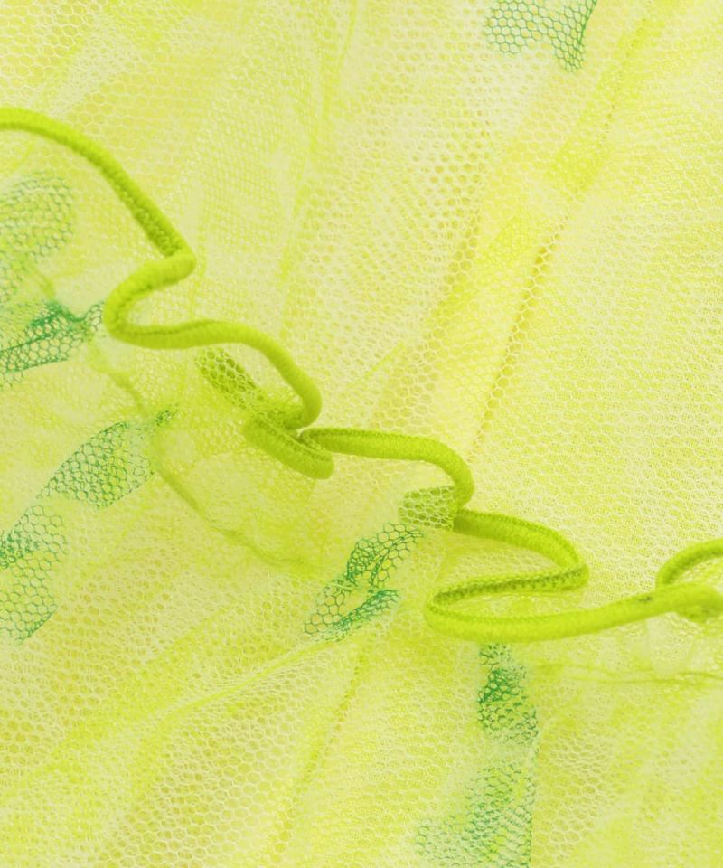 シャー素材にフラワープリント捺染を取った派手なカラー感の2段スカート。シャルをマッチして豊かなフィットが演出しており、マリファソムジャンパー(W212JMG23P)とのセットアップコーデをおすすめします。