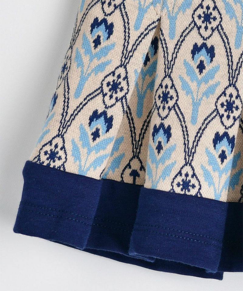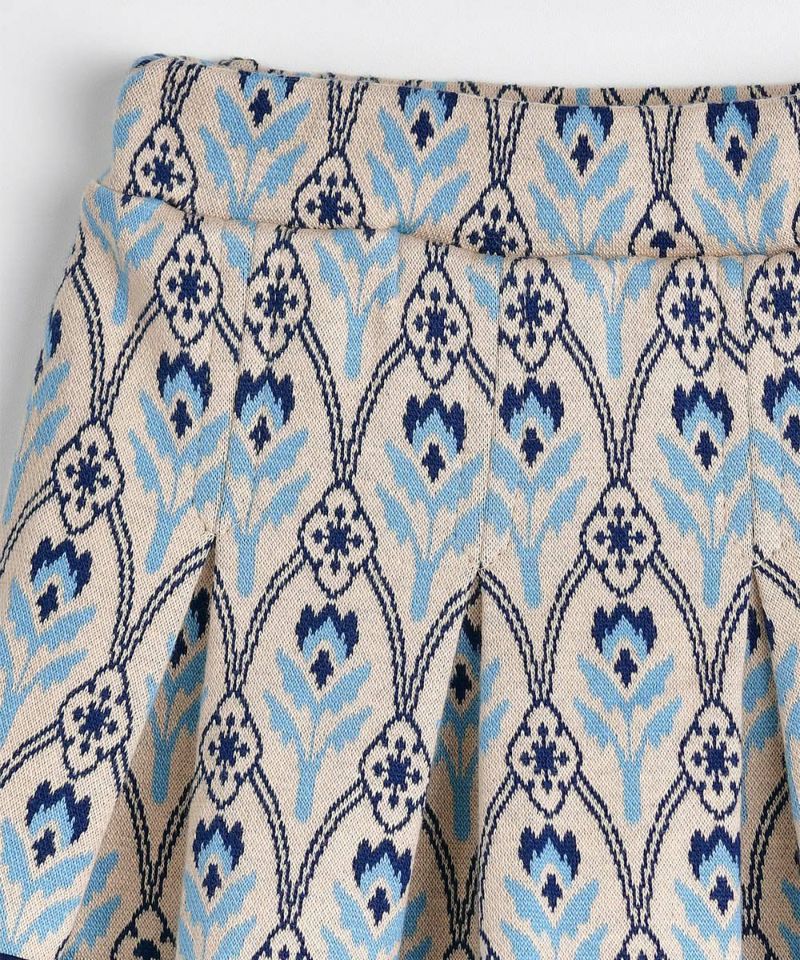 高級感のあるジャカードスカート。裏にインナーパンツがついているので、着脱も簡単で、プリーツスカートの裾にバイカラーを入れてよりおしゃれな印象に♪(W233JKB25P)とのセットアップコーデがおすすめです。