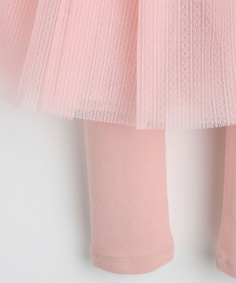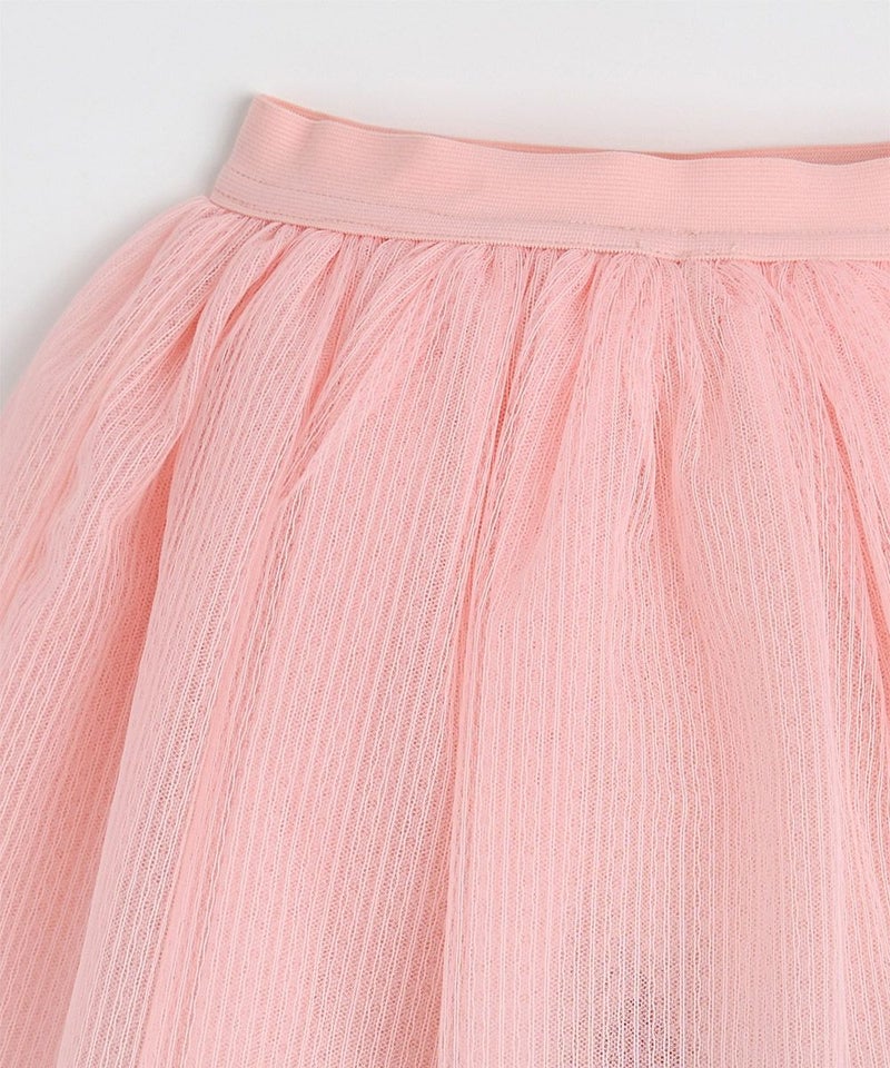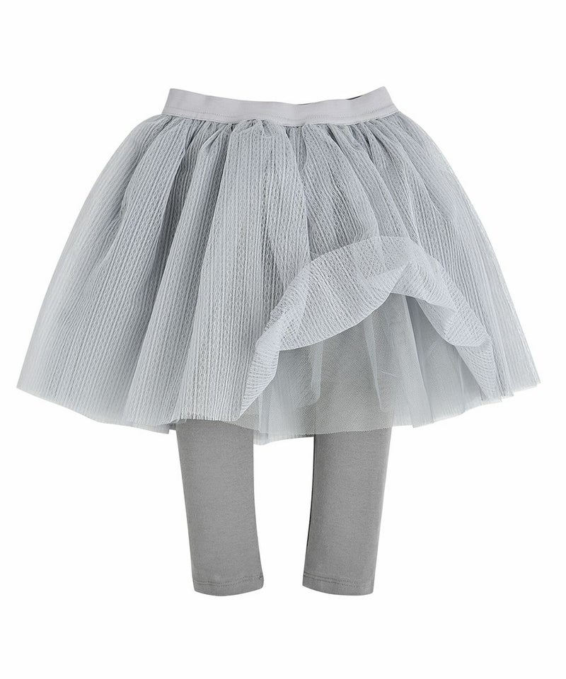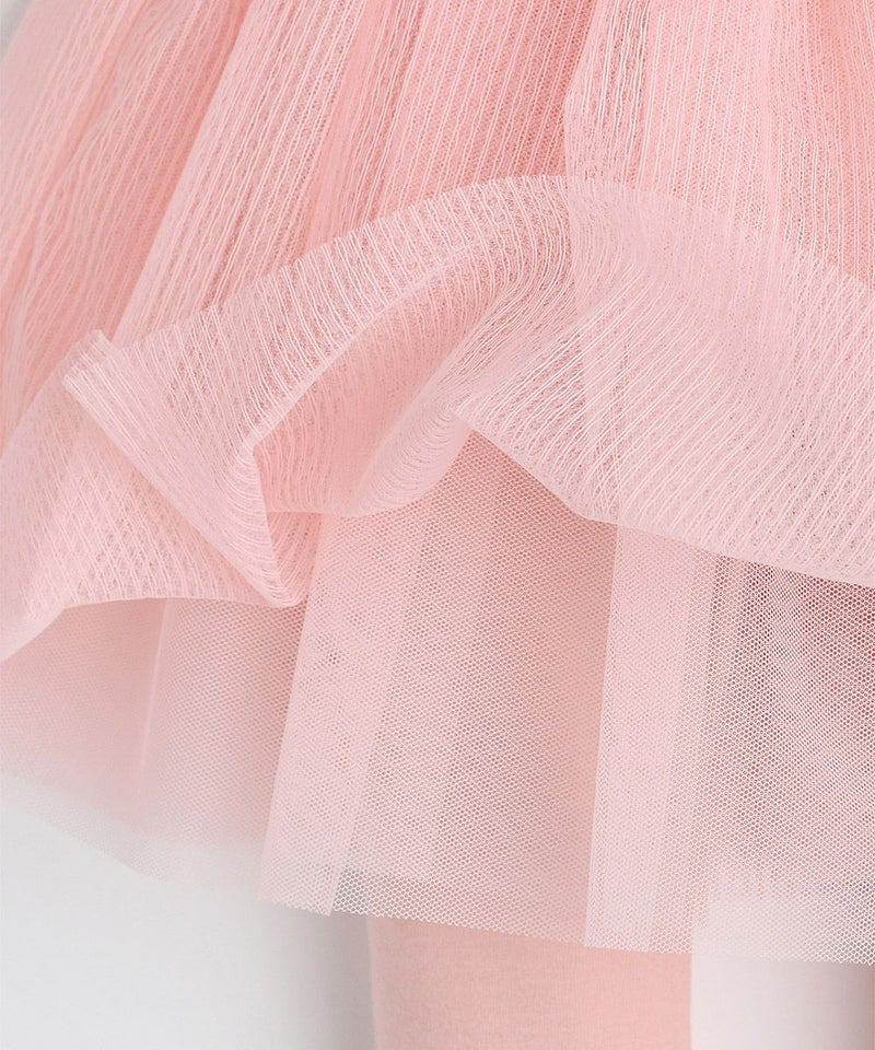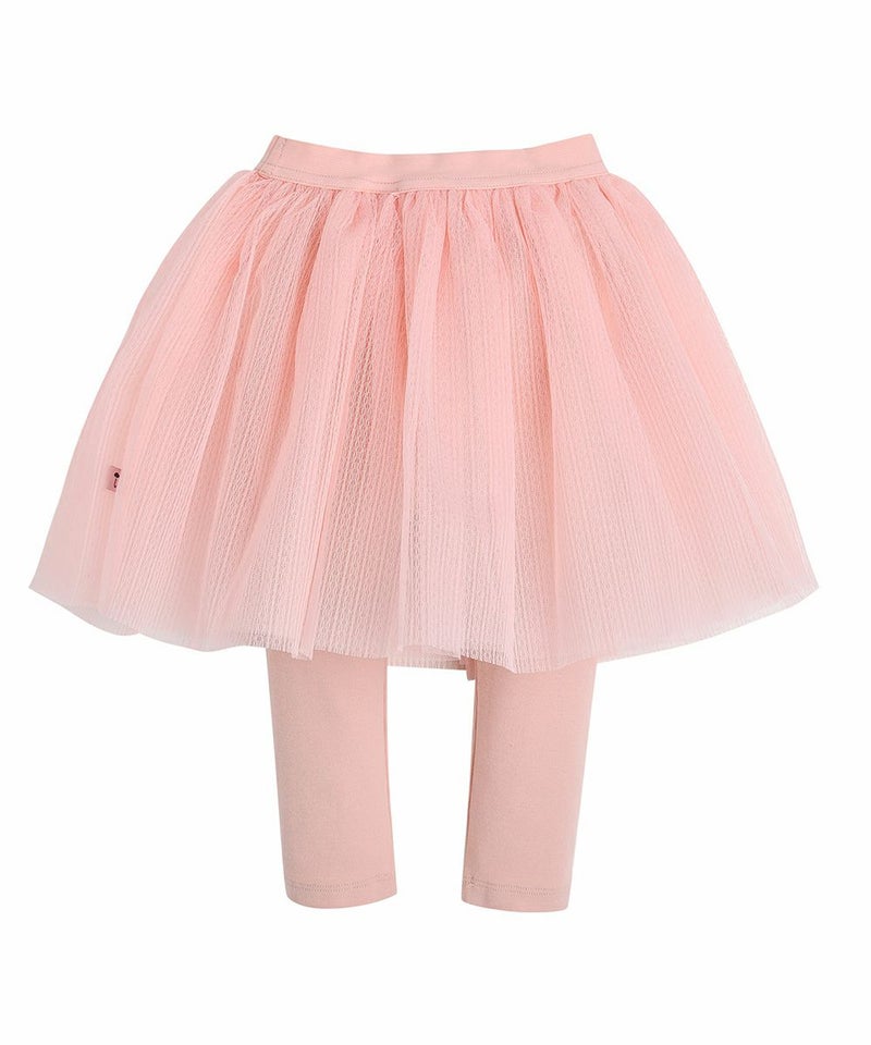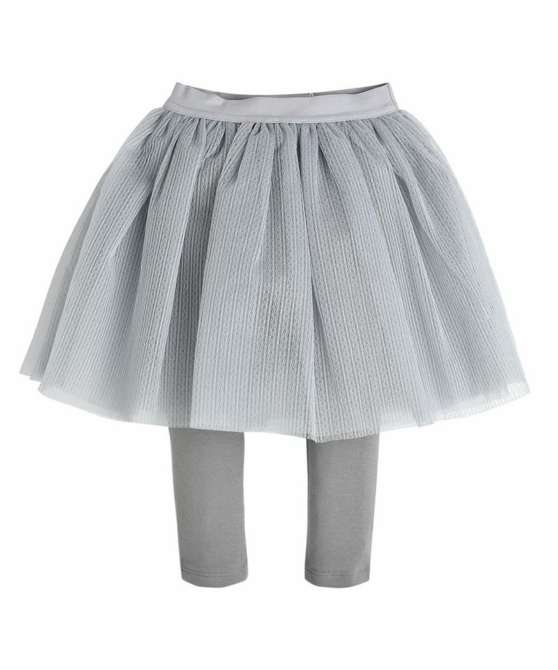 3層メッシュでふんわり感を演出したスカートタイプのレギンス。チュールのストライプパターンと膝を覆う丈感がおしゃれで雰囲気のあるアイテム。フリルカラーTシャツ(W248TSB06P)とのコーディネートがおすすめです。