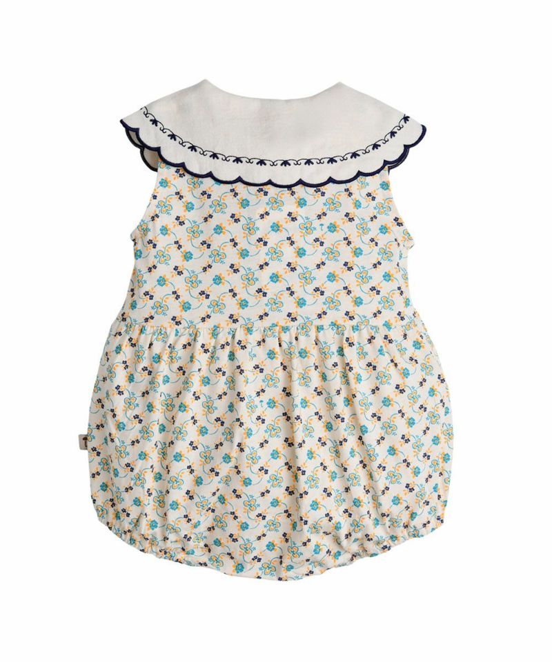 レトロなムードのフラワー総柄でデザインされたヘアバンド&キャミソールカバーオールセット。大きな襟ととヘアバンドの繊細な刺繍がポイントで、ラブリーなスタイリングが可能なアイテム。エンザイム加工により着心地がさらに柔らかく洗濯後も変形の少なく、メイリーセットアップ(M252STB25P)と姉妹ルックがおすすめです。