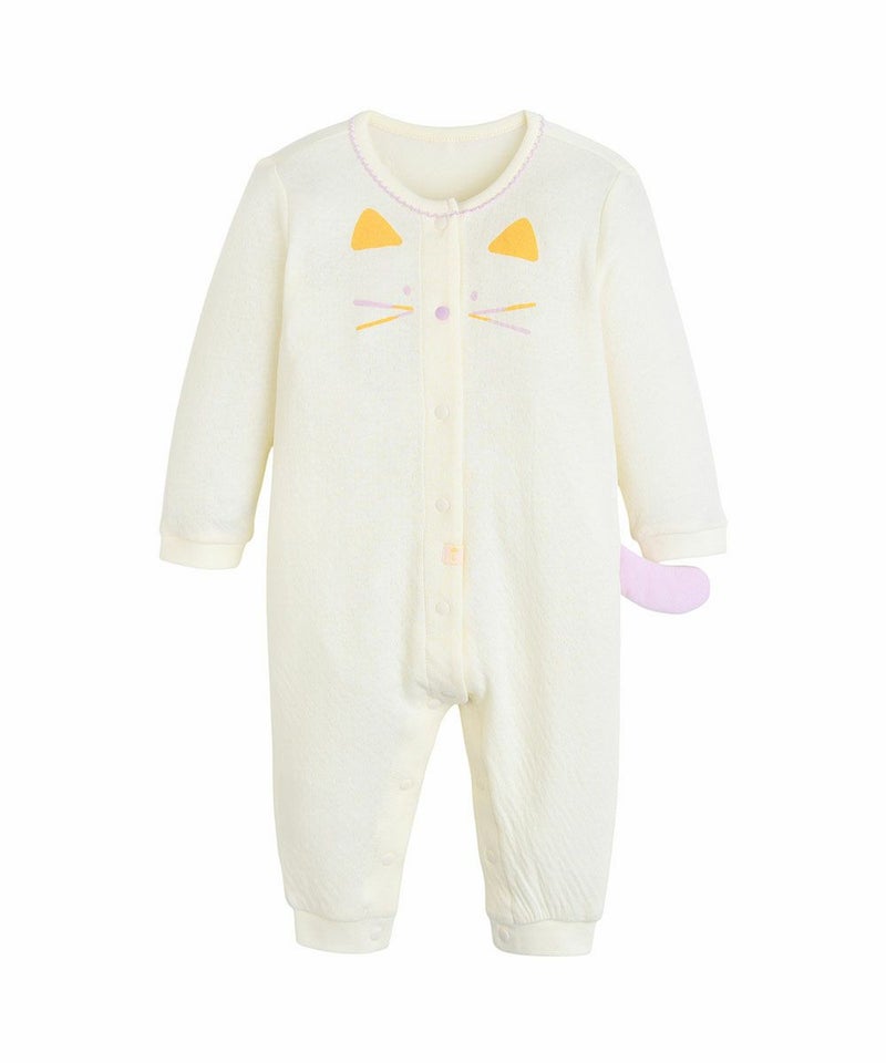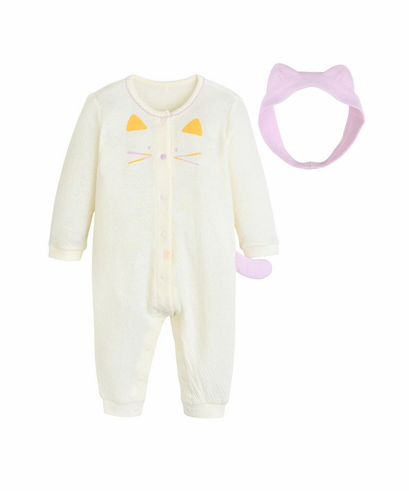 【2点セット】キャットダブルフェイス長袖カバーオール&ヘアバンド